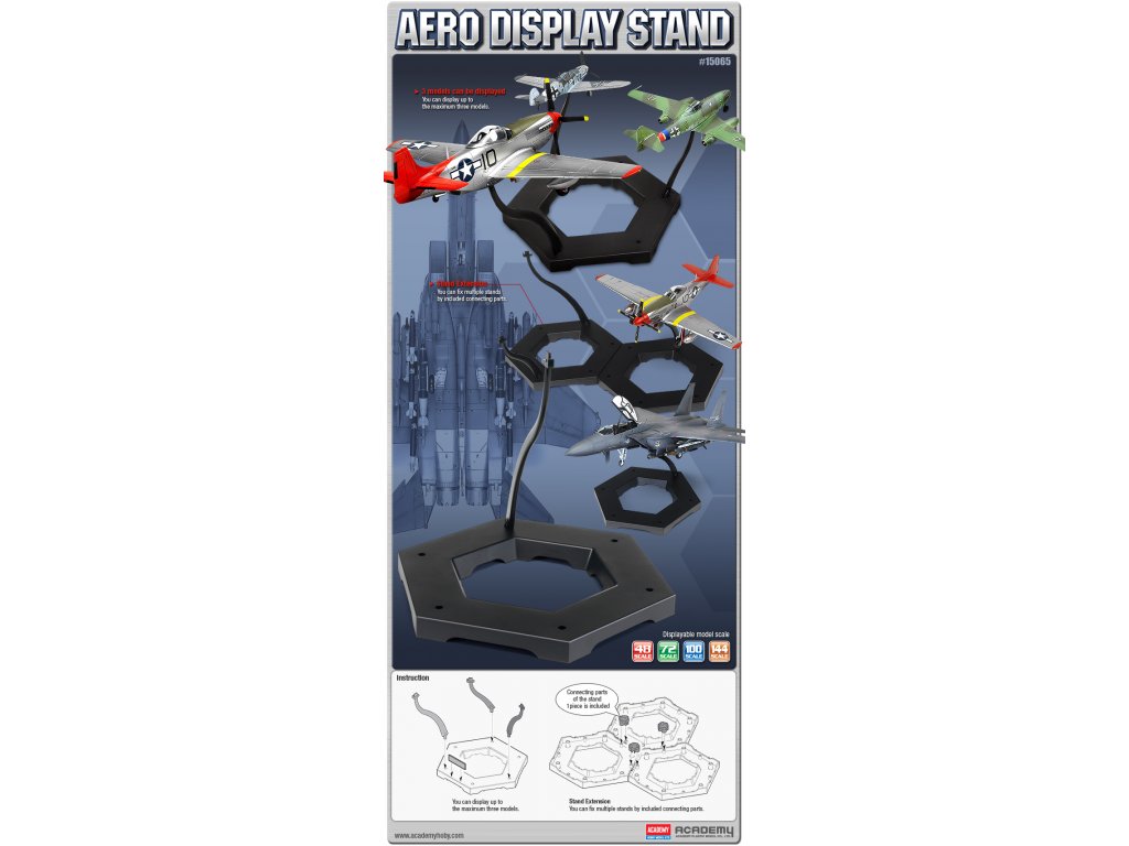 Výstavný / pracovný stojan určený pre modely lietadiel. Na stojan je možné uložiť až 3 modely naraz. Stojan je možné rozšíriť aj o ďalšie stojany.