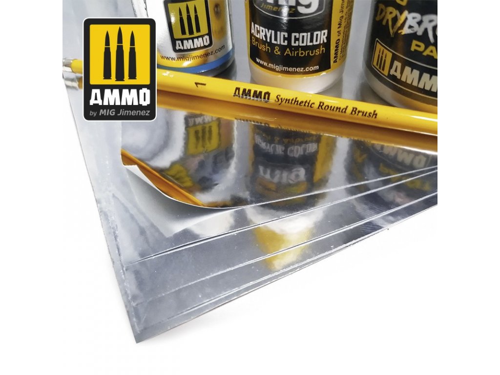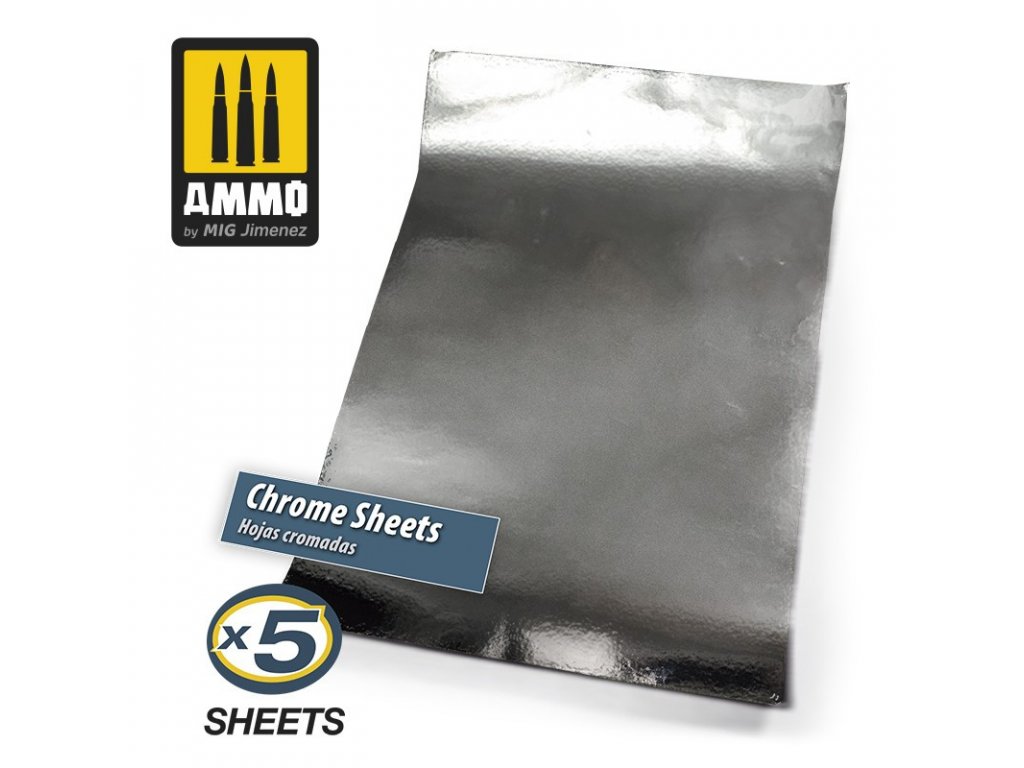 Tenká samolepiaca fólia na vernú imitáciu chromovaných povrchov, alebo lesklých kovových povrchov. Výborná je aj pre imitáciu zrkadiel, ozdobných líšt a iných detailov na modeloch áut. Veľmi jednoduché použitie. Jednoducho len odstrihnete kúsok požadovanej veľkosti. Dôkladne očistite povrch alkoholom, odstráňte biely ochranný papier a opatrne položte lepiacu chromovú fóliu na zvolené miesto. Aby ste ju prispôsobili povrchu, stlačte vatovým tampónom alebo gumeným štetcom od stredu k okrajom, kým sa fólia dokonale neprispôsobí detailom pod ňou. Nikdy na tento účel nepoužívajte kovové nástroje, aby ste predišli poškodeniu fólie, venujte zvláštnu pozornosť odstráneniu vzduchových bublín, ktoré zostanú zachytené pod povrchom. Prebytočné okraje môžete odrezať ostrou čepeľou s jemným hrotom.