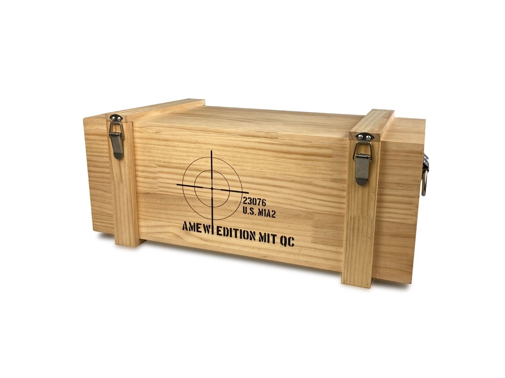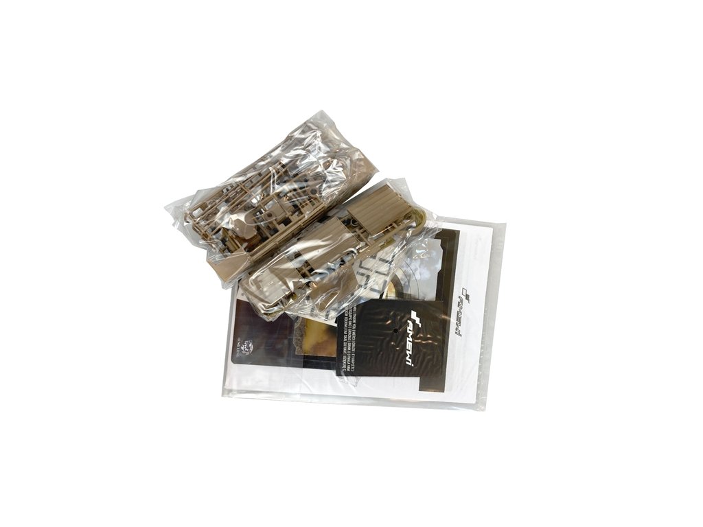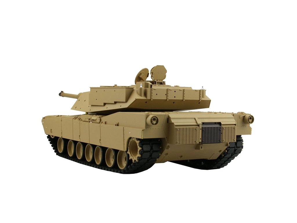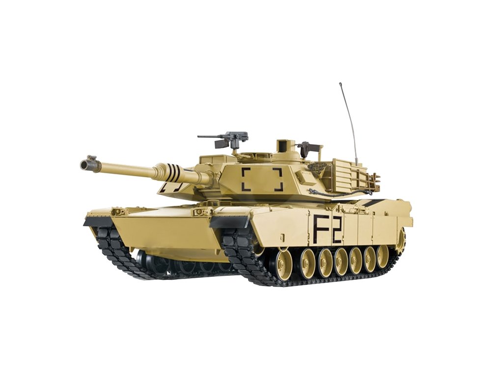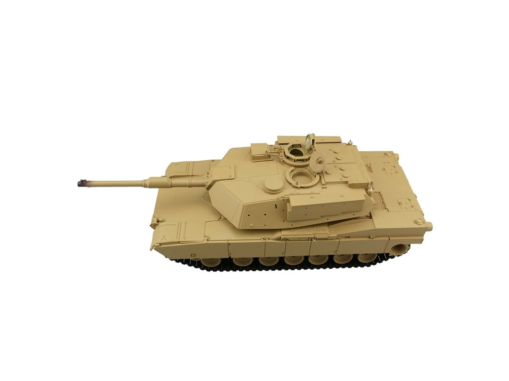 Model amerického bojového tanku na diaľkové ovládanie (RC model), kompletná sada s príslušenstvom. Model je RTR (Ready to Use) a teda je schopný prevádzky ihneď po rozbalení. Je vybavený realistickým podvozkom s funkčnými pásmi, hnacími, pojazdovými a napínacími kolesami, ktoré umožňujú jazdu dopredu, dozadu a zatáčanie. Prevodovky sú vybavené motormi veľkosti 380. Tank obsahuje kanón na 6mm guličky. Je ovládaný cyklicky podržaním ľavej páky vysielača (Spúšťanie a zdvíhanie). Má diaľkové ovládanie 2,4 GHz. Je vybavený infračerveným bojovým systémom, ktorý umožňuje interaktívne boje medzi vozidlami rovnakej série. Model je vybavený zvukovým modulom imitujúcim zvuk motora, zvuky streľby z guľometu a kanóna. Inštalovaný je aj generátor dymu. Obsahuje aj kovové diely. Model je dodávaný vo vysoko kvalitnej kartónovej krabici s potlačou.