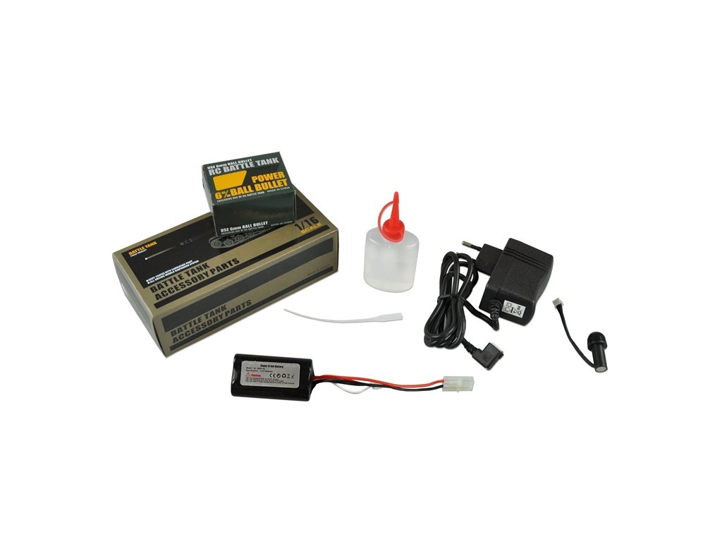 Nabite pohonný akumulátor pripojením k nabíjaciemu adaptéru a zapojením k zdroju energie. Ak je model vybavený nabíjacím konektorom, nemusíte batériu vyberať, môžete ju nabiť priamo v modeli. Vložte príslušný počet AA batérií do vysielača (dvierka na zadnej strane). Otvorte model tanku podľa konkrétneho typu (poistná páčka na spodku vane, alebo páčka na ľavej strane pod zadným blatníkom, alebo dvierka na spodnej strane vane tanku). Nabitý pohonný akumulátor vložte do tanku a pripojte ho ku napájaciemu konektoru. Zapnite najprv vysielač ON, a až potom zapnite model ON. Na vysielači stlačte gombík štartovania, alebo prepnite páčku štartovania (podľa verzie vysielača). Ozve sa zvuk štartovania a model je po chvíli (asi 20-30 sekúnd) pripravený na jazdu. Ľavou pákou sa ovláda otáčanie veže doprava-doľava. Ľavou pákou potlačenou dopredu-dozadu sa ovláda dvíhanie-spúšťanie kanóna a streľba kanóna. Pri BB verzii tanku je niekedy podľa verzie vysielača nutné pri streľbe z kanóna podržať súčasne poistné tlačidlo na hornej strane vysielača. Pravou pákou sa plynulo ovláda pohyb modelu dopredu-dozadu-doprava-doľava-zatáčanie. Funkčnými tlačidlami, alebo prepínačmi podľa verzie vysielača sa ovláda hlasitosť zvukov, streľba z guľometu, streľba z kanóna (stlačiť pravé horné tlačidlo a potlačiť ľavú páku dopredu), štartovanie-zhasínanie motora a zvuková sada. Po skončení jazdy vždy najprv vypnite model OFF a potom vysielač OFF. Batériu vždy znovu nabite pred odložením. Ak batériu nebudete používať dlhší čas, je nutné ju priebežne kontrolovať a dobíjať.