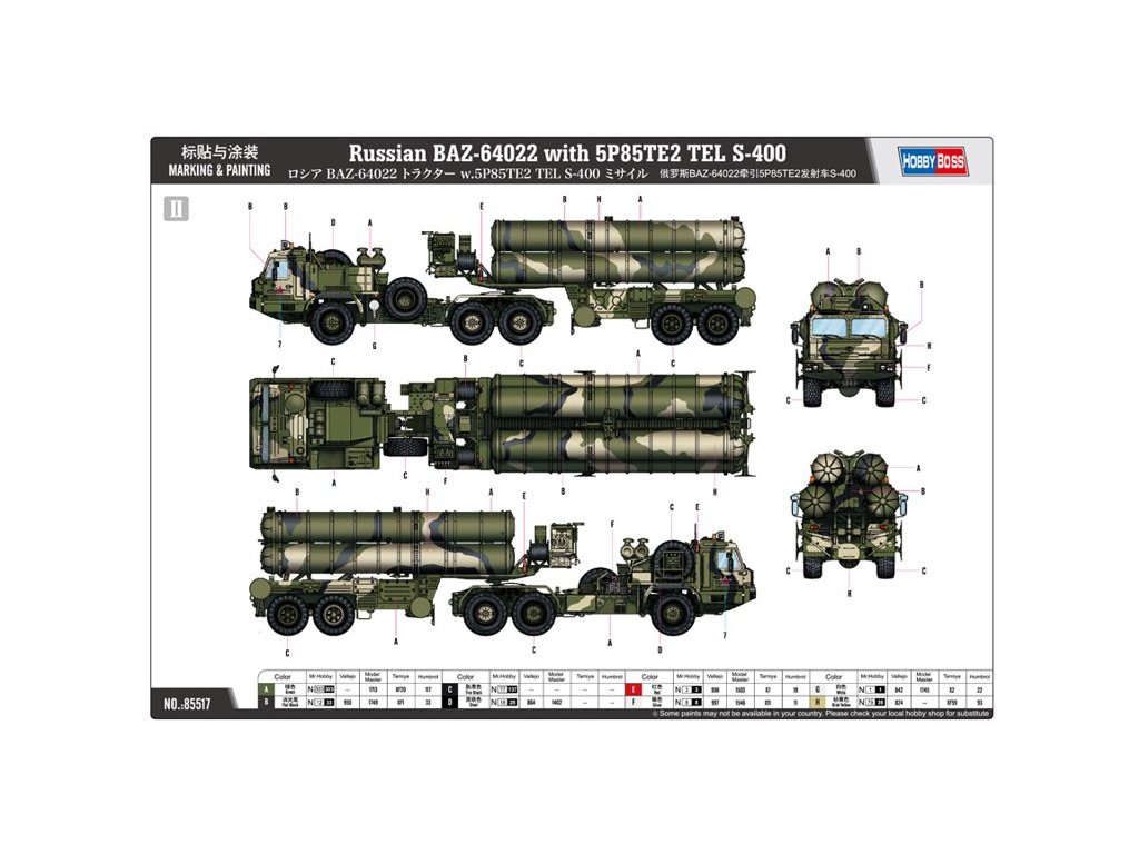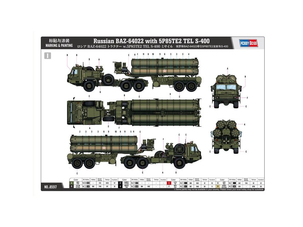 Russian BAZ-64022 with 5P85TE2 TEL S-400 Hobby Boss 85517