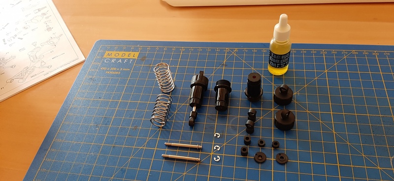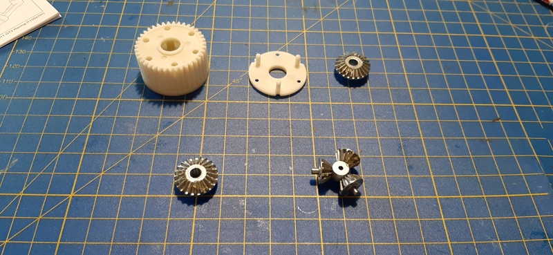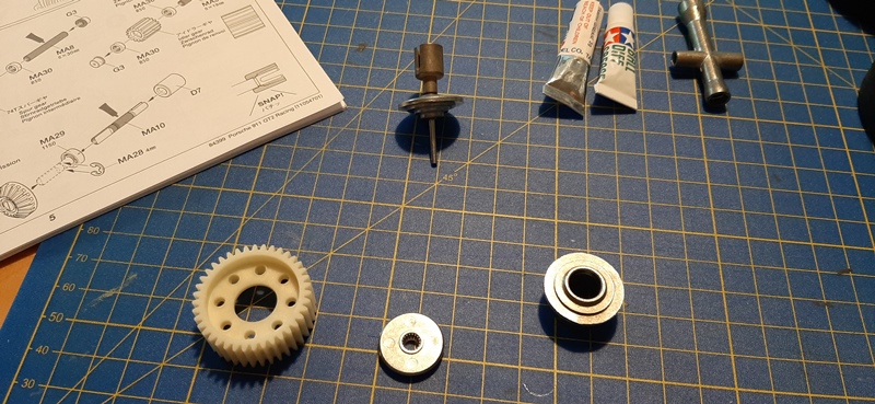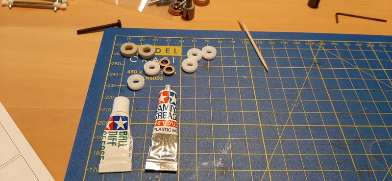 Nebol som si istý len v tom, koľko maziva mám dávať na prevody a pohyblivé časti aby mi priložená tubička vazelíny vystačila na všetko. Ale tá malá tuba nakoniec pre model celkom postačovala. Zvyšné mazivo som ešte natlačil po odmontovaní horných plastových dielov do diferenciálov.