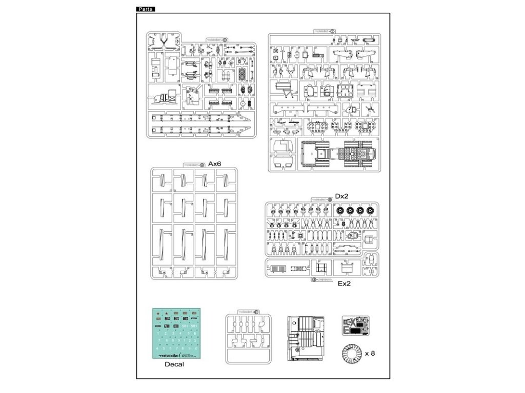 Všeobecné informácie: Stavebnica z plastu, obsahuje nezostavené a nenafarbené diely. V niektorých druhoch stavebníc sú obsiahnuté aj doplnkové kovové, PUR a gumené diely. Pozor, obsahuje drobné diely, udržujte mimo dosahu deti do 3 rokov. Nevhodné pre deti do 14 rokov.