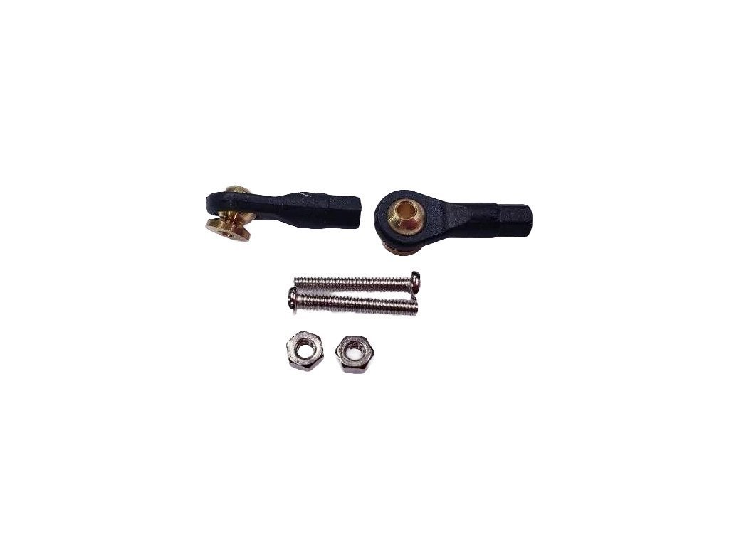 Guľové čapy typu V1 (plastové oko pre tiahlo so závitom M2, mosadzný čap s krátkym krkom s vonkajším priemerom 5 mm a otvorom pre skrutku M2). Na presné spojenie a úplne voľný pohyb tiahla vo všetkých rovinách. Súprava obsahuje skrutky M2 PH, hlavicu PanHead a matice M2. K dispozícii v čiernej a bielej farbe.