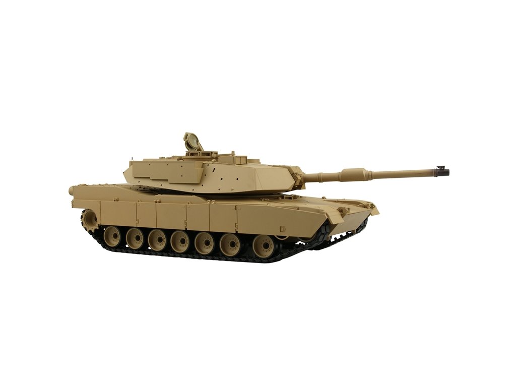 Model amerického bojového tanku na dálkové ovládání (RC model), kompletní sada s příslušenstvím. Model je RTR (Ready to Use) a tudíž je schopen provozu ihned po rozbalení. Je vybaven realistickým podvozkem s funkčními pásy, hnacími, pojezdovými a napínacími koly, které umožňují jízdu dopředu, dozadu a zatáčení. Převodovky jsou vybaveny motory velikosti 380. Tank obsahuje kanón na 6mm kuličky. Je ovládán cyklicky podržením levé páky vysílače (Spouštění a zvedání). Má dálkové ovládání 2,4 GHz. Je vybaven infračerveným bojovým systémem, který umožňuje interaktivní boje mezi vozidly stejné série. Model je vybaven zvukovým modulem imitujícím zvuk motoru, zvuky střelby z kulometu a kanónu. Instalován je také generátor kouře. Obsahuje také kovové díly. Model je dodáván ve vysoce kvalitní kartonové krabici s potiskem.