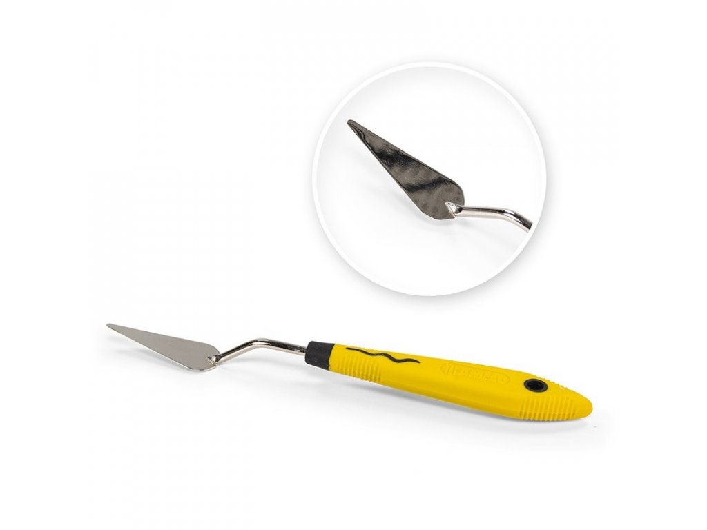 Modelářská špachtle slzovitého tvaru určená pro práci s modelářskými hmotami pro tvorbu terénu v diorámu nebo s modelářským tmelem. Najde široké využití iv jiných druzích profesionálních i hobby prací.