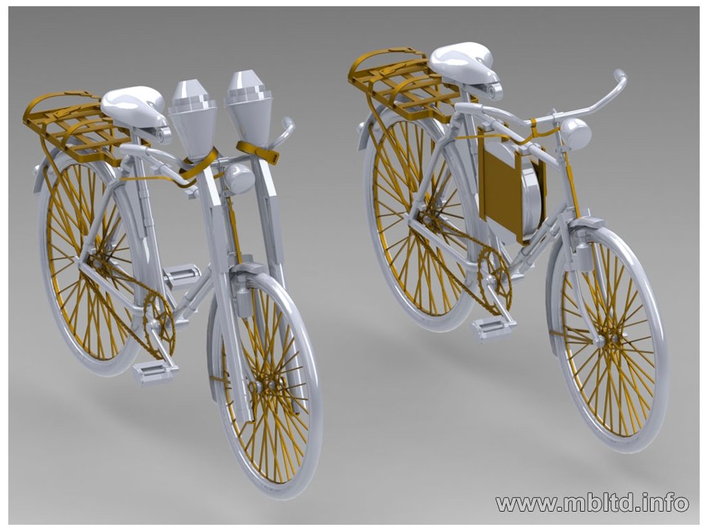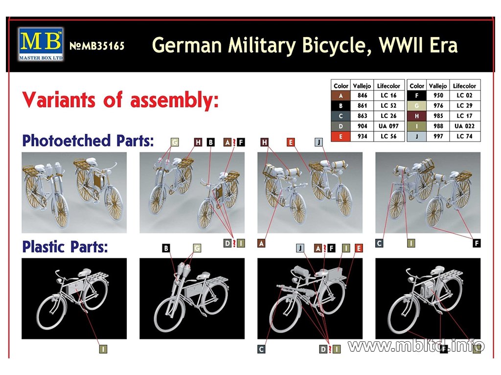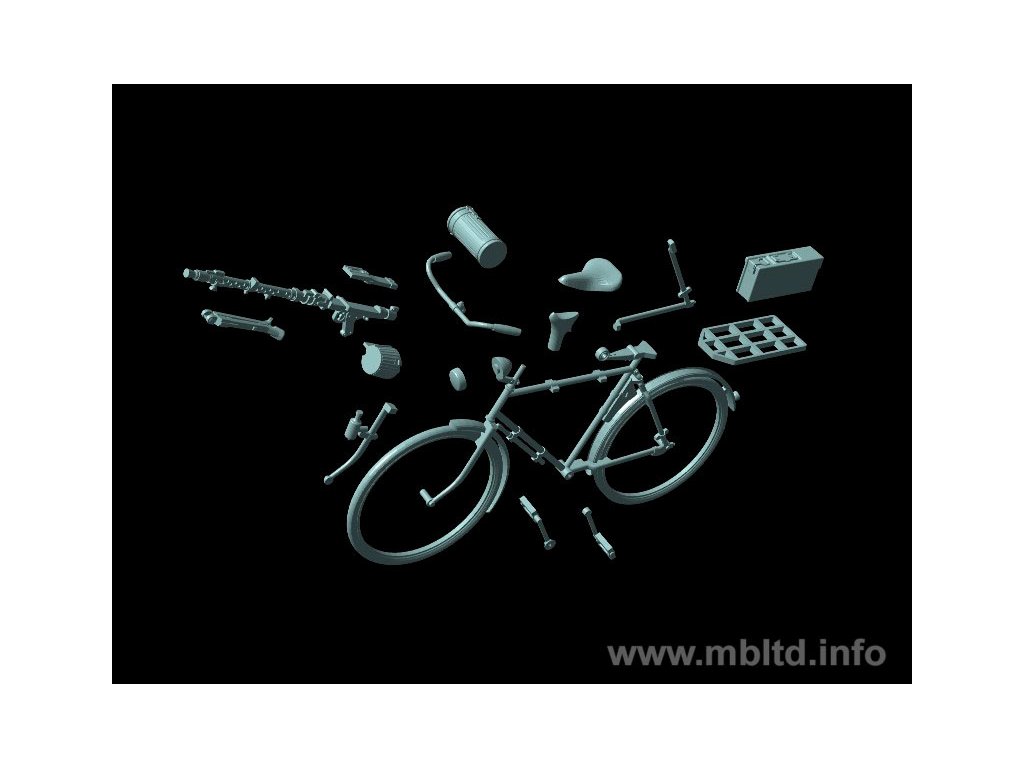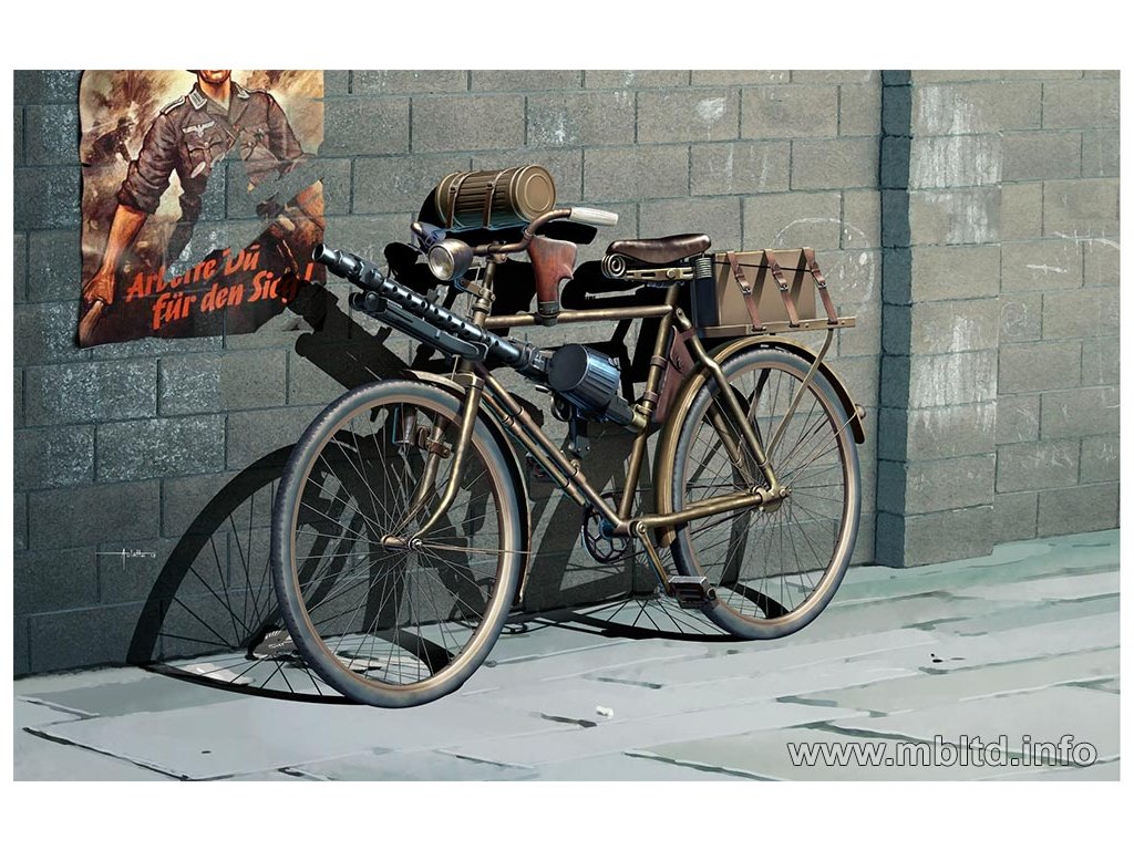 Stavebnice plastikového modelu vojenského kola používaného vojáky Wermachtu během druhé světové války. Stavebnice obsahuje fotoleptané kovové díly.