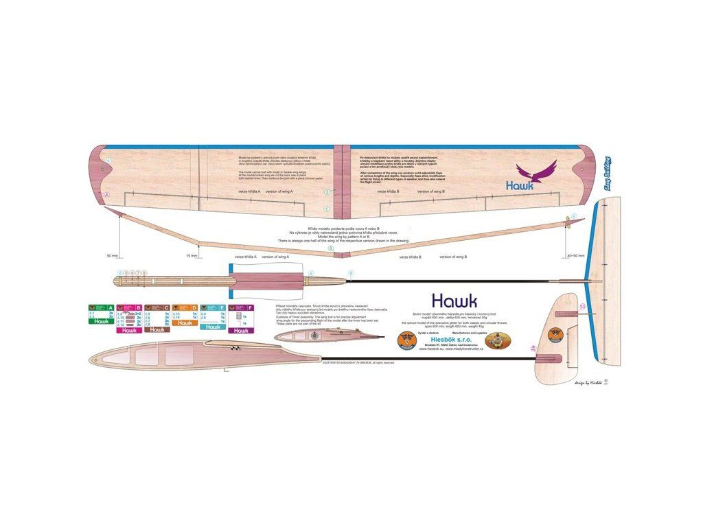 Házítko Hawk je soutěžní házedlo určené pro začínajícího modeláře. Model lze postavit v několika verzích. S lomeným křídlem do V nebo W, házecí, vystřelovací, model lze táhnout na šňůře i osadit miniaturním RC vybavením atd...