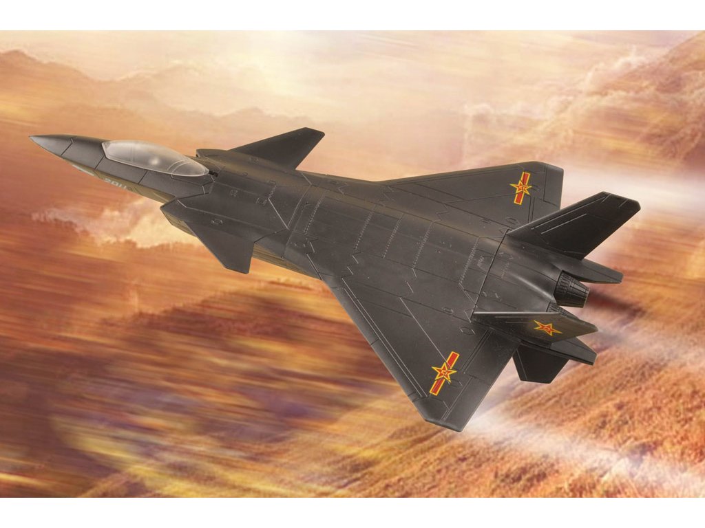 Stavebnice plastikového modelu čínského stealth stíhacího letadla ze současnosti. Stavebnici není nutné lepit, protože díly se do sebe jen zacvaknou. Obsahuje také LED světélko.