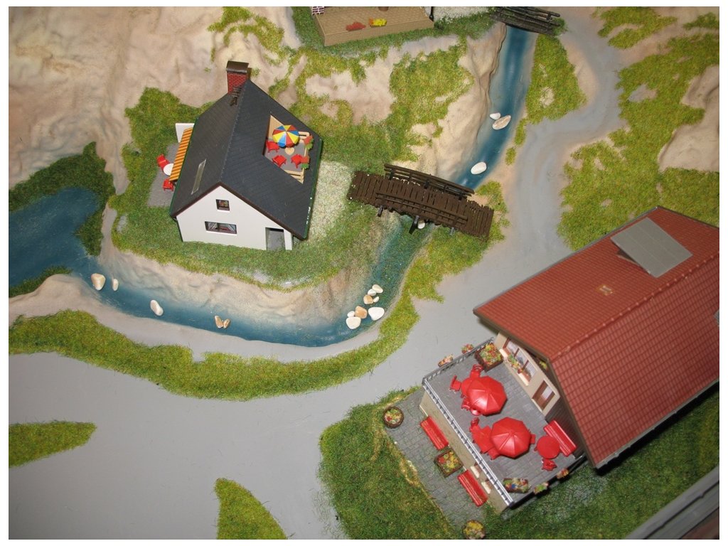 Poměrně rozsáhlý projekt, zákazník si přál digitální provoz nejméně tří vlakových souprav. Detailnost krajiny byla omezena, zákazník si chtěl drobné detaily dokončit sám.