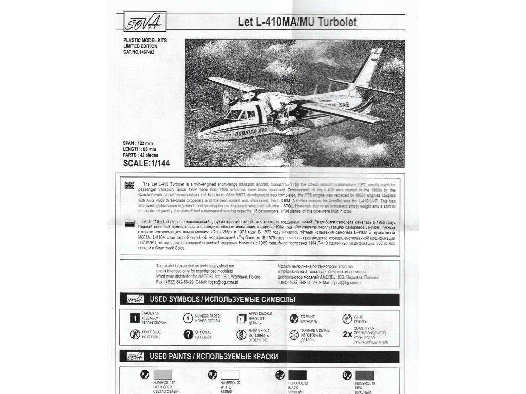 Stavebnice plastového modelu československého dopravního letadla letecké společnosti Dubnica Air.