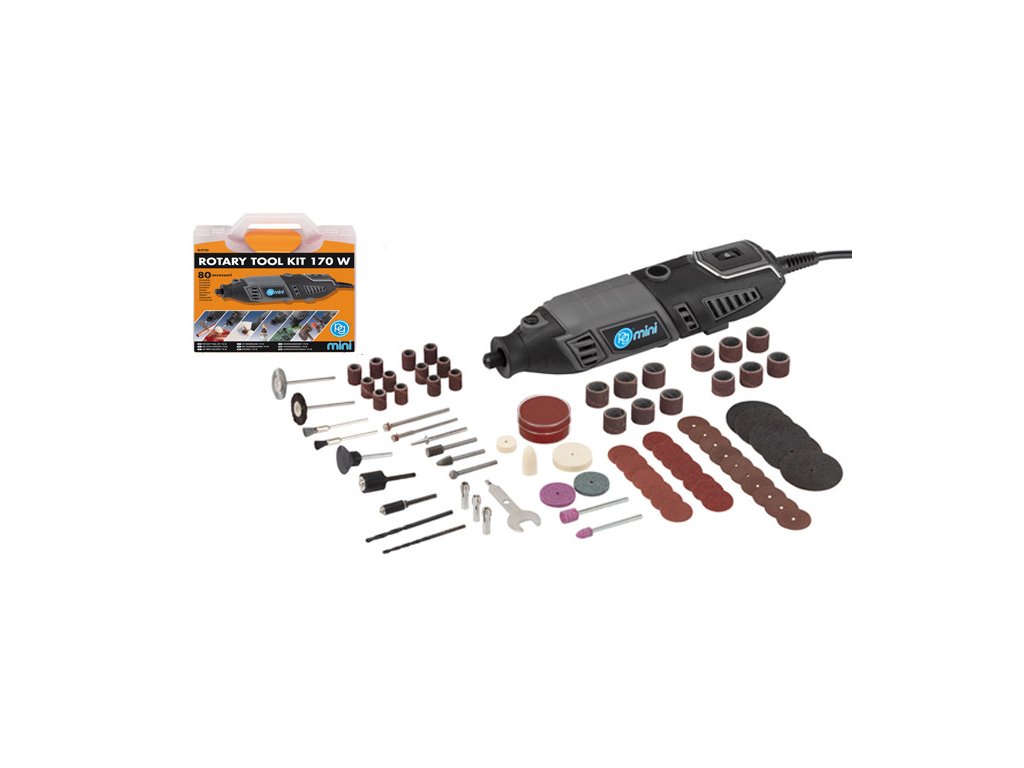 Elektrické nářadí v kufříku určené k vrtání, broušení, frézování, gravírování.Sada obsahuje 80ks nářadí pro všechny možné práce.