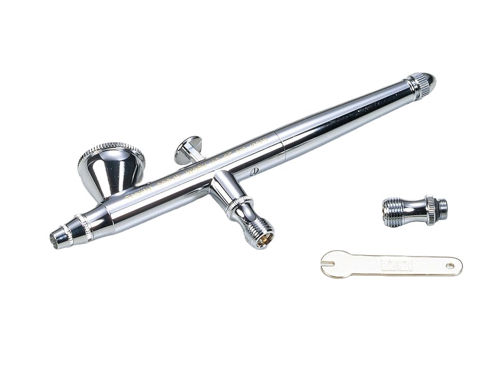 Profesionální celokovová stříkací pistole s integrovanou nálevkou, dvojčinnou spouští, klasickou tryskou a gravitačním plněním. Vhodná je pro všestranné použití v modelářství (malování modelů), při umělecké práci (americká retuš – malování obrazů), vhodná pro nehtová studia (dekorování nehtů), vhodná pro dočasné tetování (body painting) a pro potravinářské práce (malování na dorty a koláče potravinářskými barvami).