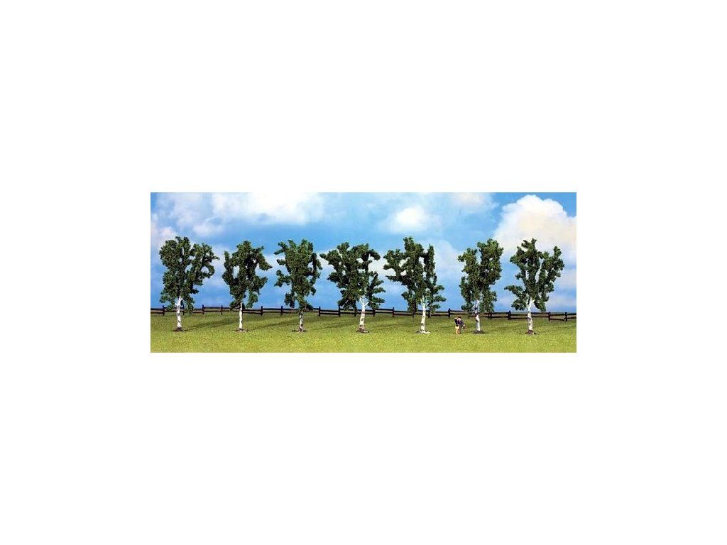Stromy do diorámu břízy 7 ks mix 100mm vysoké
