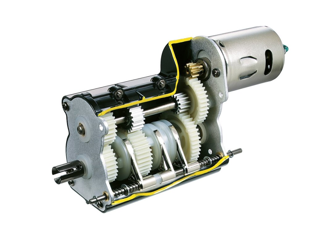 Stavebnice nákladního tahače na dálkové ovládání na podvozku Tamiya s pohonem elektromotorem a 3rychlostní převodovkou.