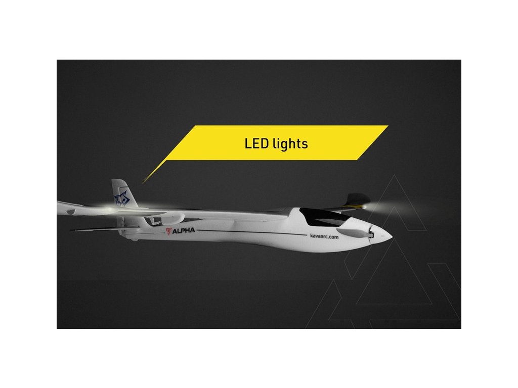 Obsah balení: trup vylisovaný z EPO s namontovaným střídavým motorem, sklopnou vrtulí 8,5x5", regulátorem otáček KAVAN 30A, osmikanálovým 2.4GHz FHSS přijímačem a 2 servy KAVAN GO-09, křídlo vymačkané z EPO s0 a LED , ocelovou spojku křídla, osmikanálový vysílač 2.4GHz FHSS, pohonný akumulátor LiPo KAVAN 30/60C 11,1V 1200 mAh, rychlonabíječ a podrobný návod na stavbu a létání.