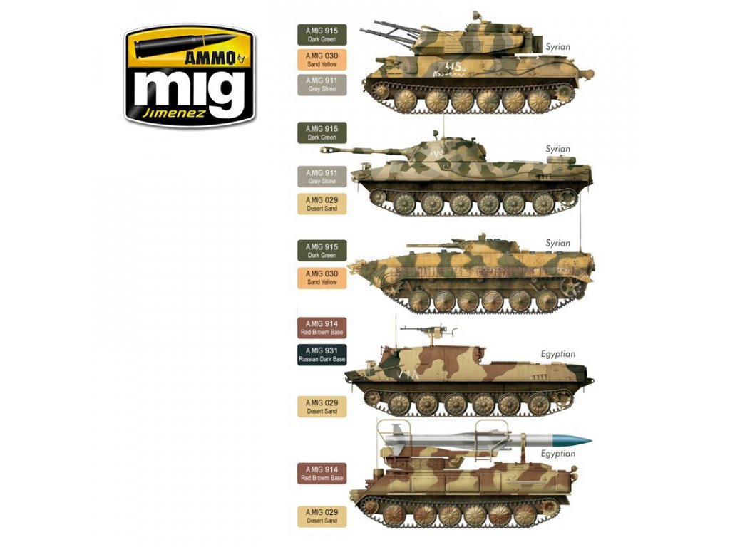 Set mit Acryl-Modellfarben von Ammo, entwickelt zum Bemalen oder Sprühen von Modellen militärischer Ausrüstung der syrischen und ägyptischen Streitkräfte im Jom-Kippur-Krieg 1973.
