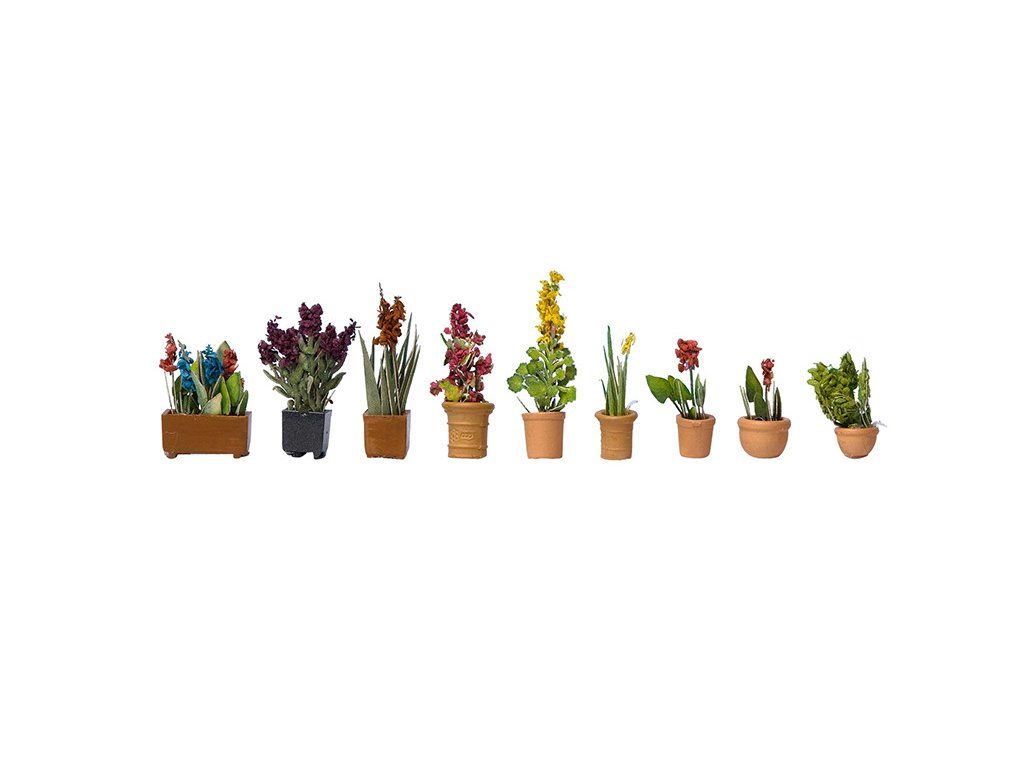 Blumentöpfe mit Zierblumen 9 Stück HO