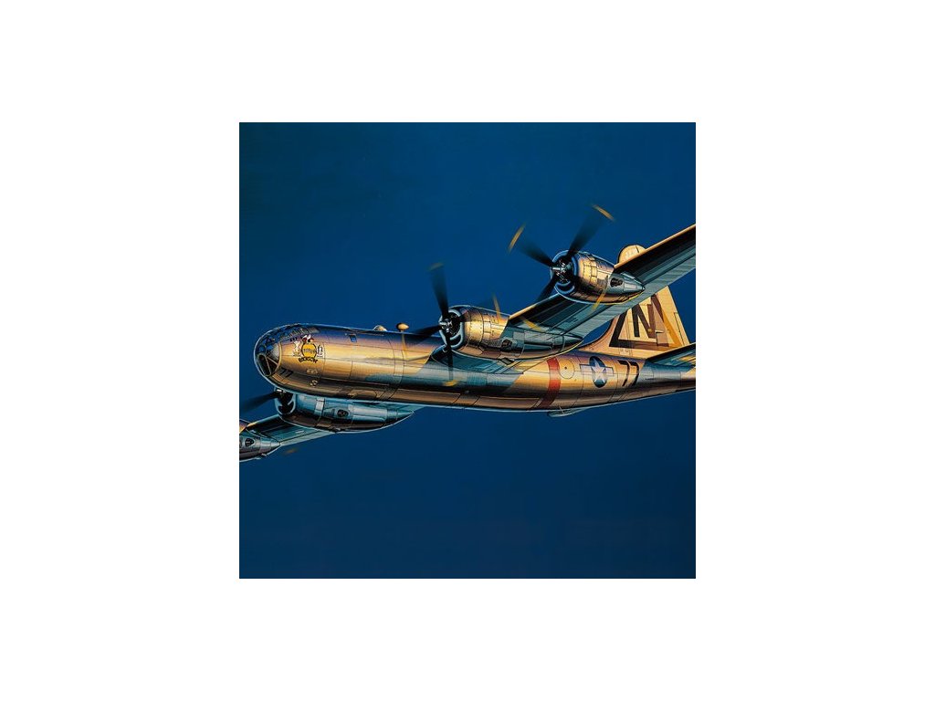 Plastikmodellbausatz des legendären amerikanischen Bombers vom Ende des Zweiten Weltkriegs. Diese besondere Maschine ist berüchtigt, weil sie die erste Atombombe der Menschheitsgeschichte auf die japanische Stadt Hiroshima abgeworfen hat.