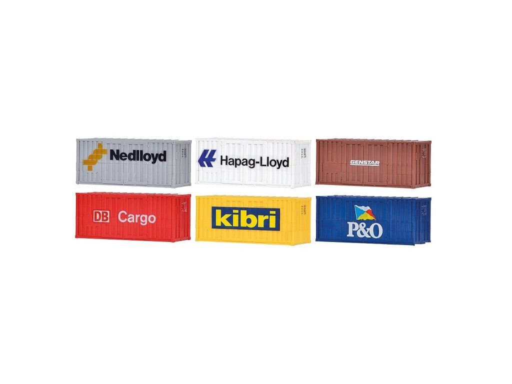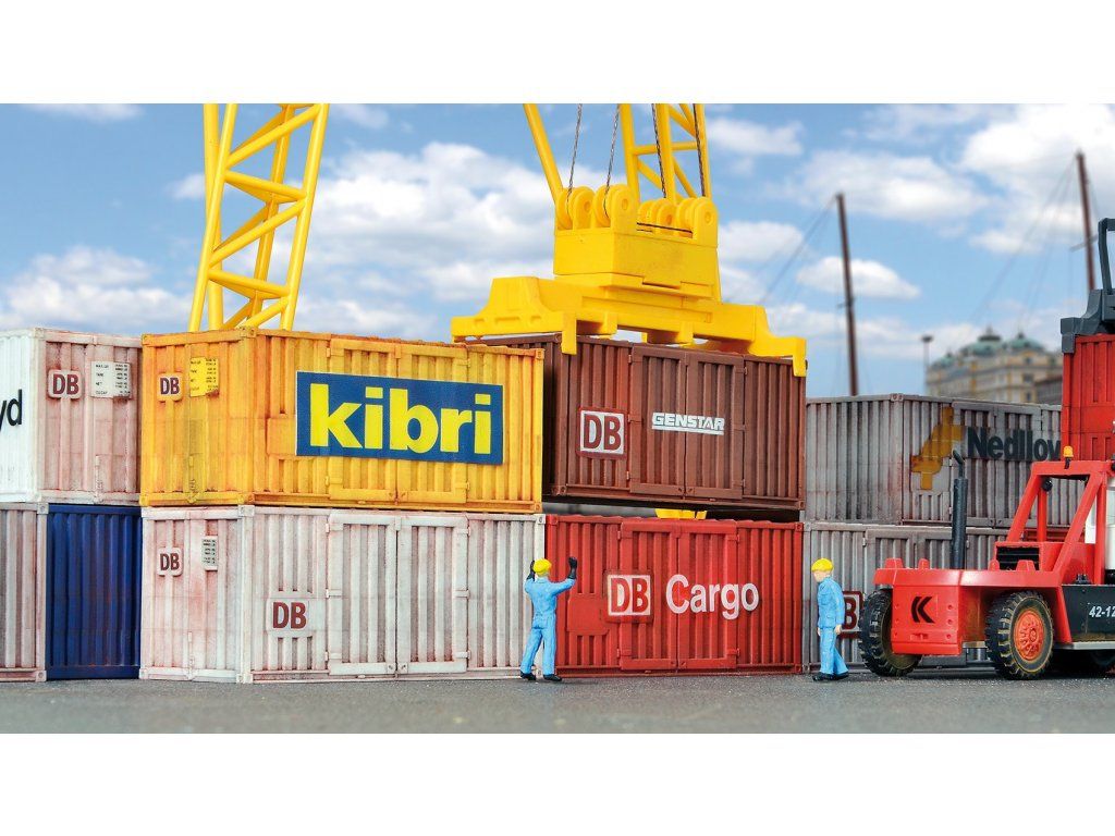 Plastikmodellbausatz mit Frachtcontainern, geeignet als kleines Detail für ein Diorama oder eine Eisenbahnlandschaft.