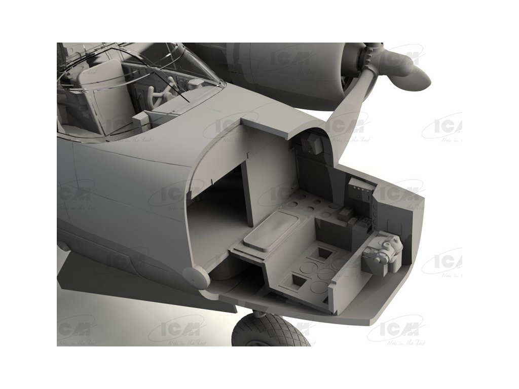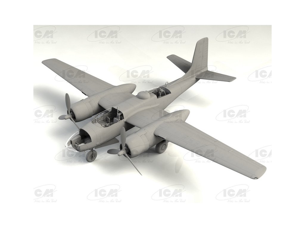 Plastikmodellbausatz eines amerikanischen Angriffs- und Bomberflugzeugs aus dem Zweiten Weltkrieg und den 1950er Jahren. Der Bausatz enthält auch Piloten- und Bodenpersonalfiguren.