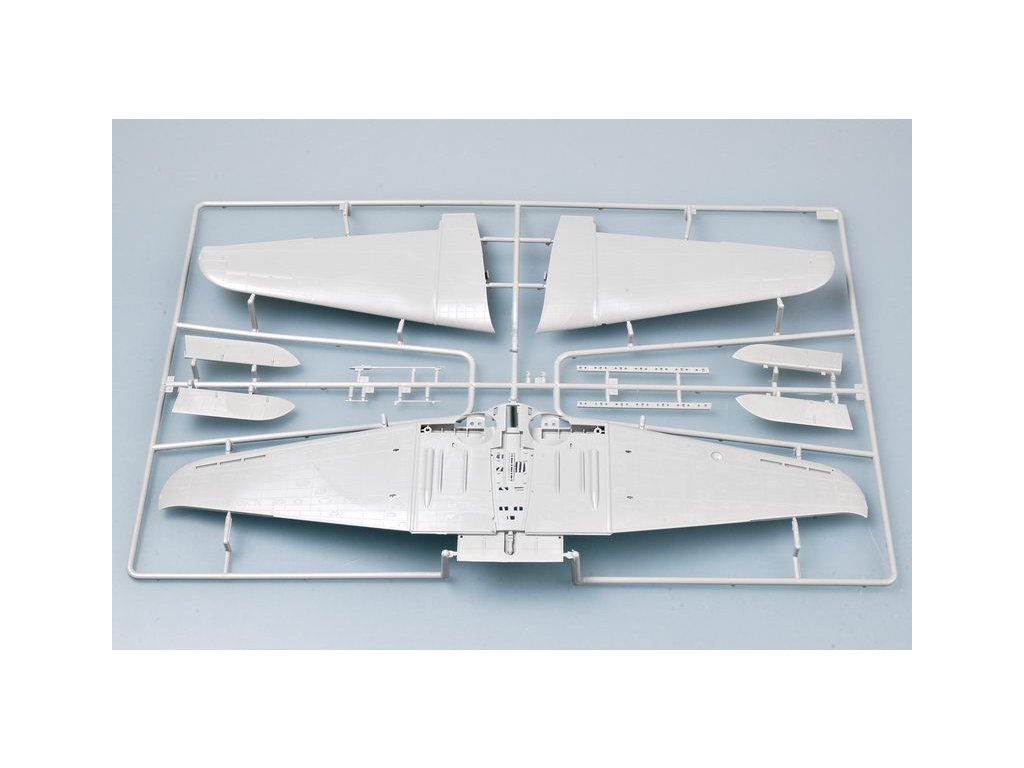 Plastikmodellbausatz eines amerikanischen Marine-Sturzkampfbombers aus dem 2. Weltkrieg. Der Bausatz enthält fotogeätzte Metallteile und Gummireifen.