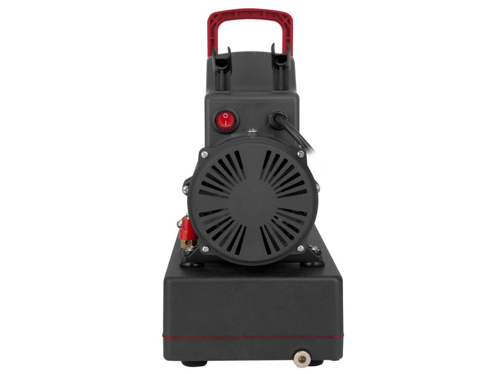 Ölfreier Kolbenkompressor. Mit Druckbehälter, Ausgangsdruckregler, ausgestattet mit Filter und Druckmesser. Geringe Geräuschentwicklung während des Betriebs. Durch sein geringes Gewicht ist er tragbar und für den Heim- und Hobbygebrauch geeignet. Dieser Kompressor ist für Airbrushes mit Düsen von 0,2 bis 1 mm geeignet. Er enthält doppelte Kühllüfter, um einen langfristigen Dauerbetrieb zu ermöglichen.