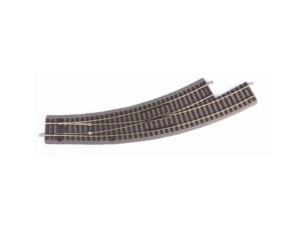 Linke gebogene Weiche BWL R3 mit HO-Gleisbettung