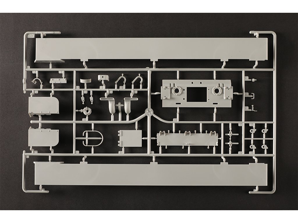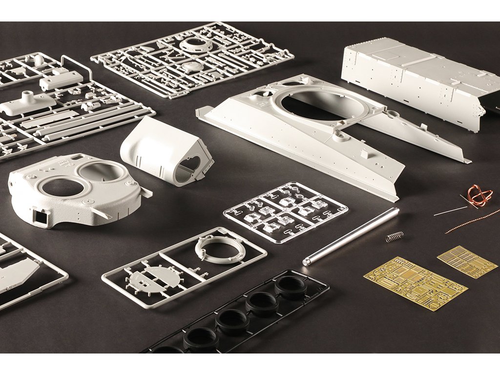 Kunststoffbausatz, enthält unmontierte und unlackierte Teile. Bei einigen Bausätzen sind zusätzlich Metall-, PUR- und Gummiteile enthalten. Achtung, enthält Kleinteile, außerhalb der Reichweite von Kindern unter 3 Jahren aufbewahren. Nicht geeignet für Kinder unter 14 Jahren.