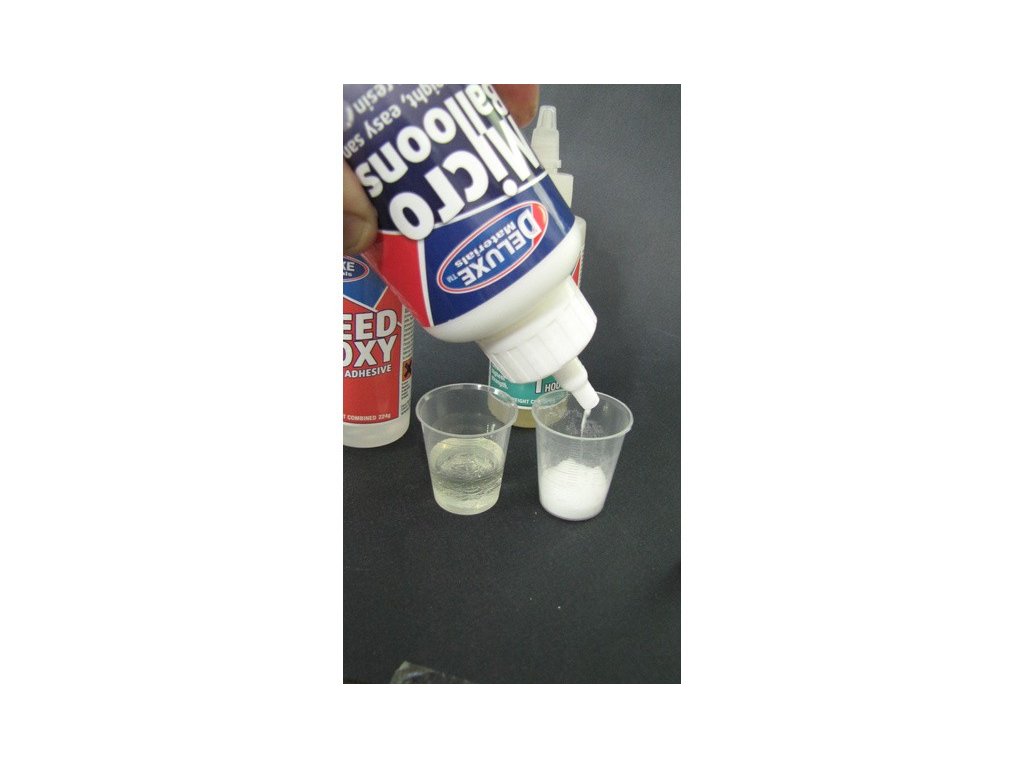 Das Einmischen von Mikroballons in das Epoxidharz spart Harzverbrauch, reduziert das resultierende Gewicht und Epoxidharz mit Mikroballons weist in der Regel eine höhere Festigkeit auf.