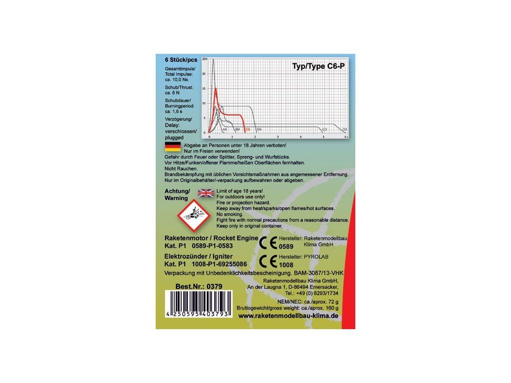 Rocket-Motor Klima C6-P EL UN0432 6 Stück