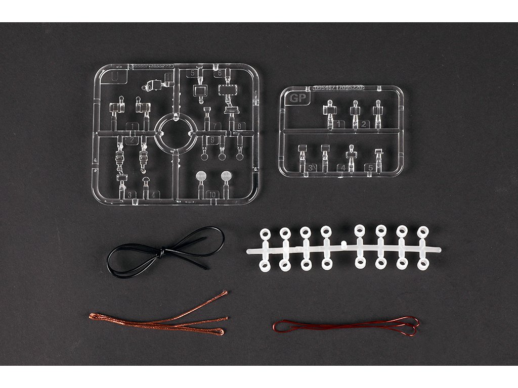 Kunststoffbausatz, enthält unmontierte und unlackierte Teile. Bei einigen Bausätzen sind zusätzlich Metall-, PUR- und Gummiteile enthalten. Achtung, enthält Kleinteile, außerhalb der Reichweite von Kindern unter 3 Jahren aufbewahren. Nicht geeignet für Kinder unter 14 Jahren.
