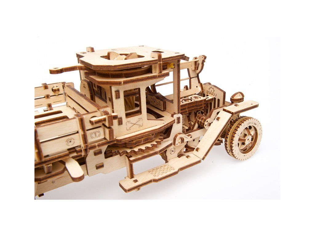 Die Holzbausätze für mechanische Modelle von UGEARS sind für Kinder und Erwachsene bestimmt. Alle Teile werden mit präziser Lasertechnologie aus hochwertigem Sperrholz geschnitten. Die Präzision der Teile garantiert eine bequeme Montage auch komplexerer Modelltypen. Fast alle UGEARS-Modelle sind in irgendeiner Weise funktionsfähig, entweder in Form beweglicher Teile oder dank des Gummiantriebs. Die Modelle können wiederholt zerlegt werden, für die Montage wird kein Klebstoff verwendet.