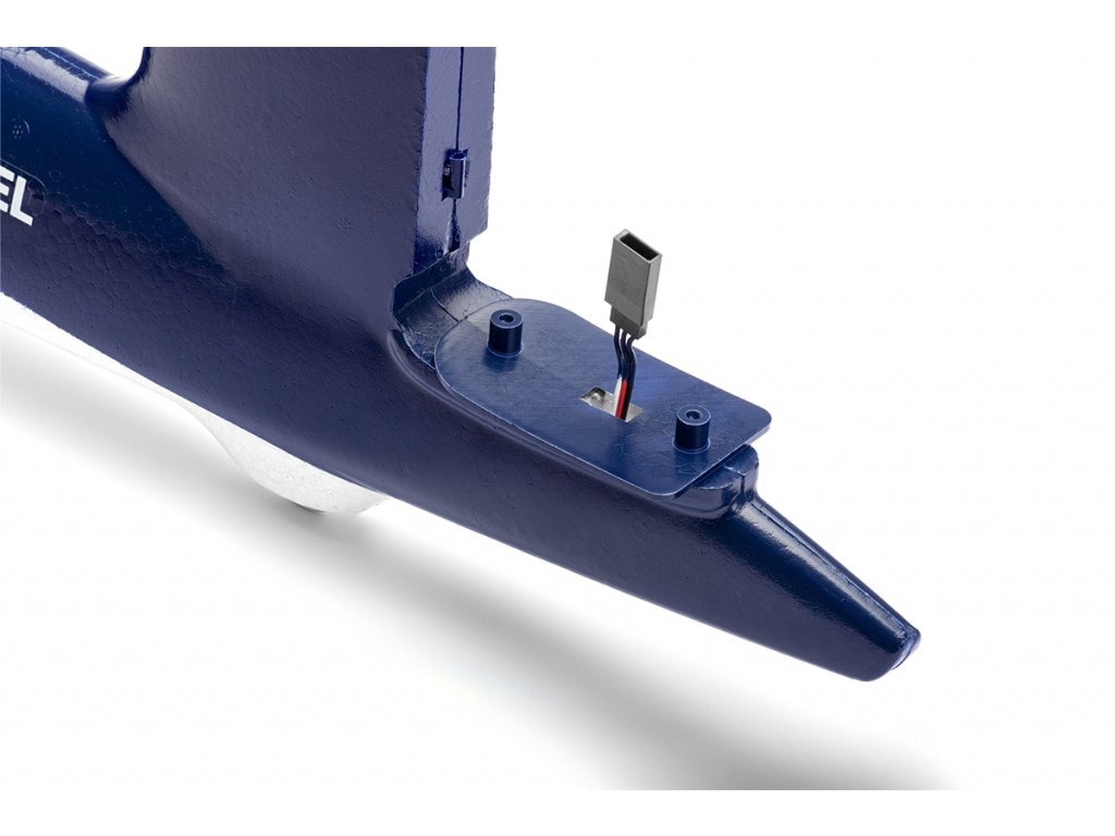 Die Heckflächen bestehen ebenfalls aus EPO-Schaum mit Carbonrohrversteifungen. Die horizontale Leitwerksfläche ist mit zwei Schrauben am Rumpf befestigt, was eine einfache Montage und Demontage ermöglicht.
