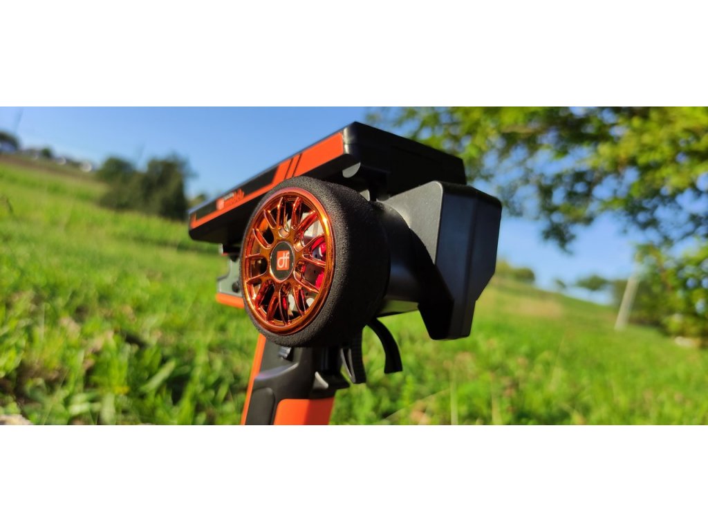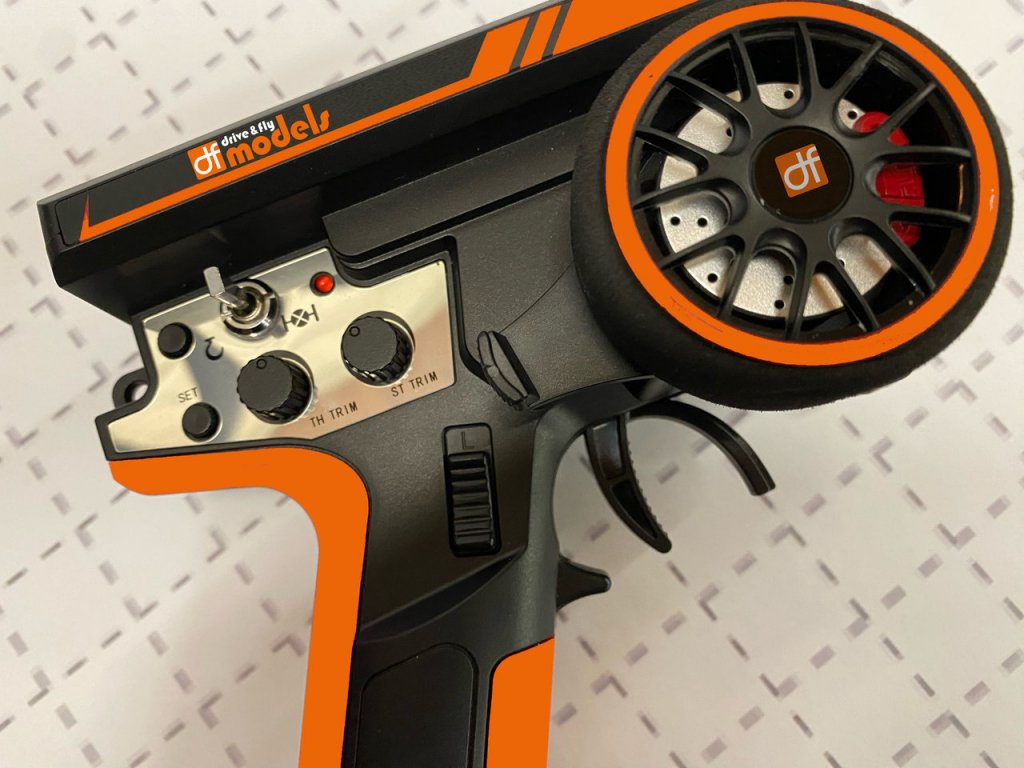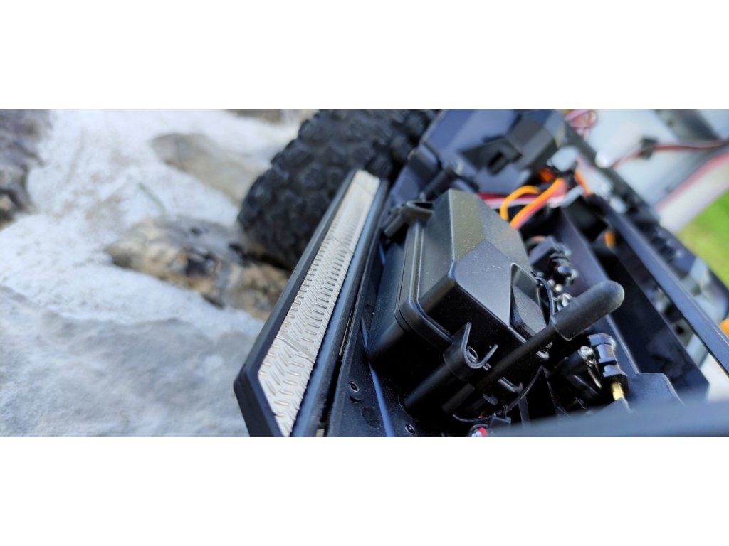 V balení nájdete aj špeciálny vysielač s LCD displejom pomocou ktorého dokážete ovládať navijak, diferenciály, svetlá apod. Zistíte na ňom napríklad stav pohonného akumulátoru, stav batérií vysielača, silu signálu, ktorý prevodový stupeň je zaradený, uhol natočenia volantu v %, polohu plynu v % a stav trimu. Vysielač má prídavnú páku, pomocou ktorej je možné „ovládanie jednou rukou“ a držiak na smartfón.