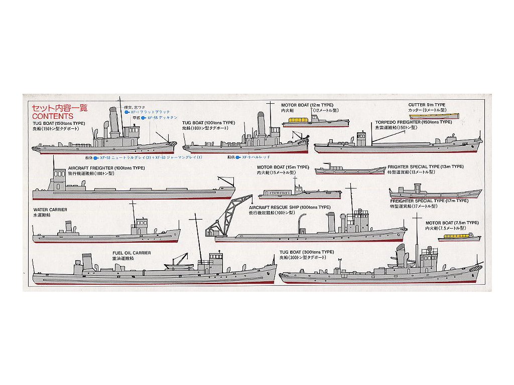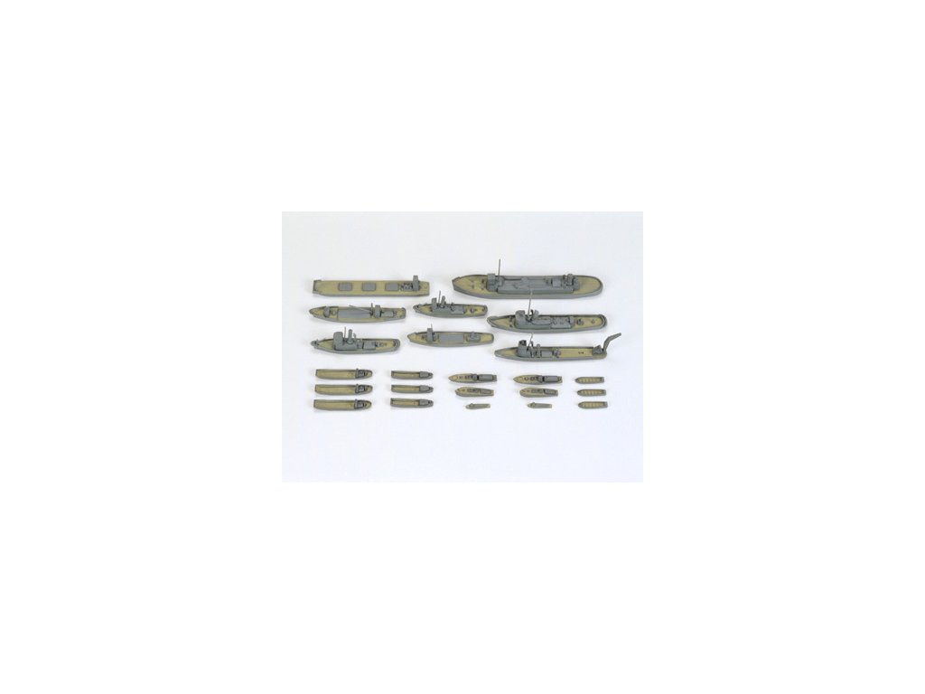 Stavebnica plastového modelu sady civilných lodí a lodí určených na ťahanie. Modely sú v prevedení "po čiaru ponoru", ideálne pre umiestnenie do diorámy.