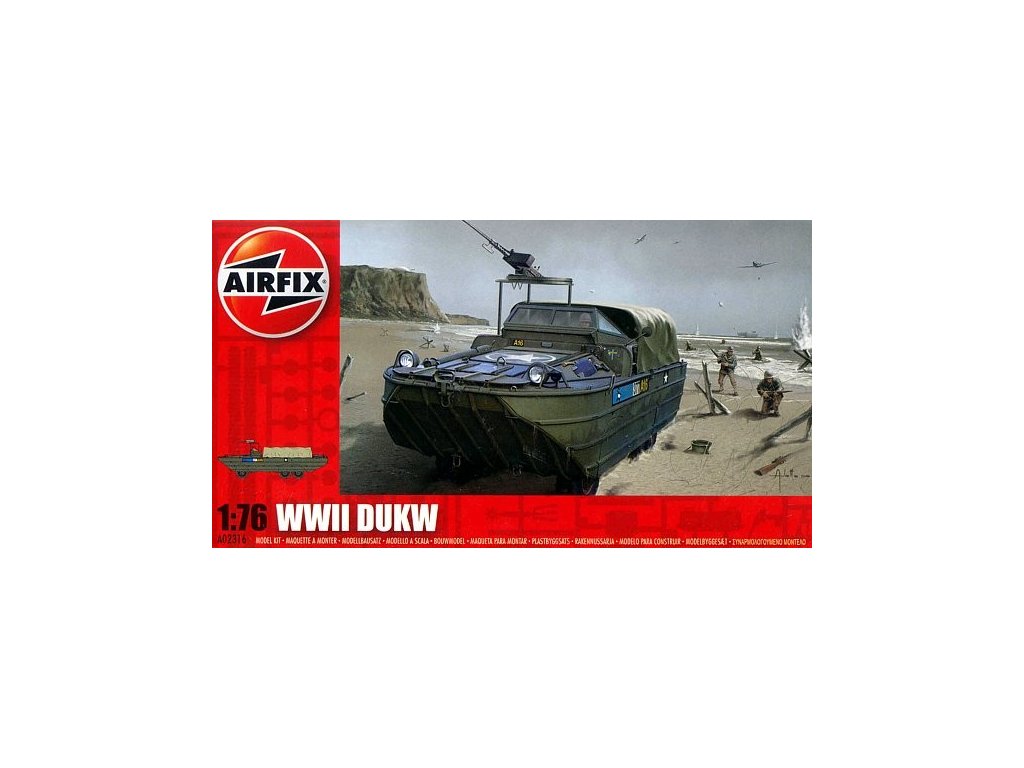 Stavebnica plastového modelu amerického obojživelného nákladného auta, ktoré sa široko uplatnilo aj počas vylodenia v Normandii počas 2. svetovej vojny.