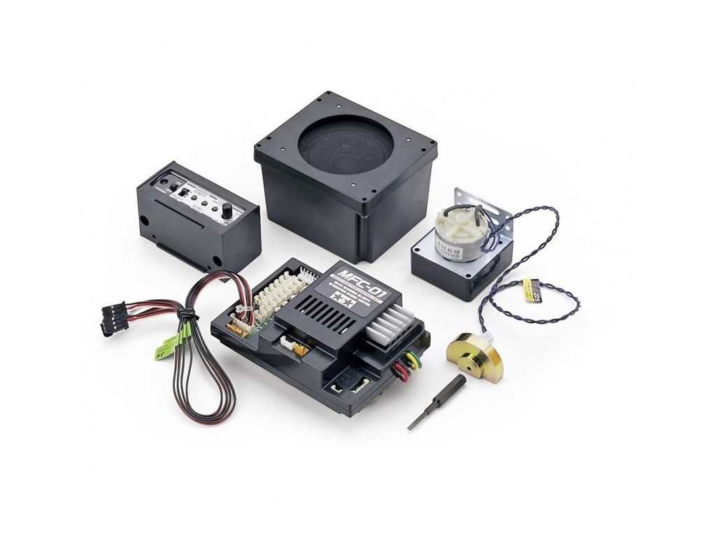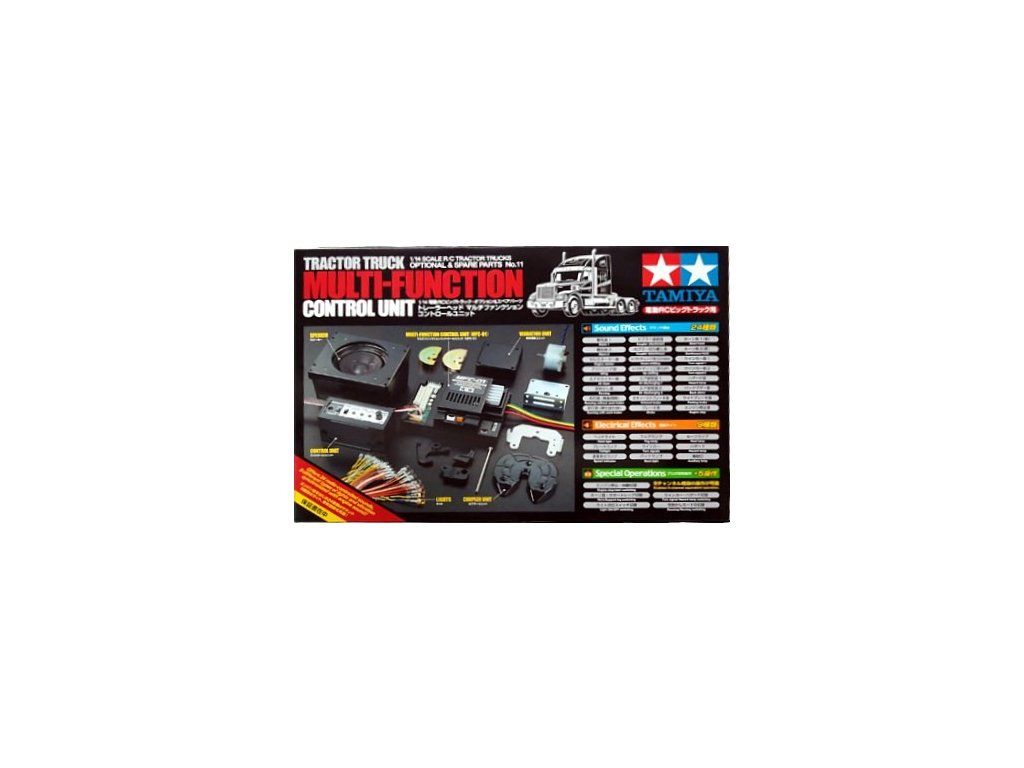 Multifunkčná jednotka TAMIYA MFC-01 (US-Style) simuluje v modeloch nákladných vozidiel takmer všetky zvukové a svetelné funkcie skutočných strojov. Zvuky zodpovedajú hlavne americkým nákladným autám a perfektné ladia k modelom Tamiya Freightliner Cascadia, King Hauler, Ford Aeromax alebo Globe Liner a podobne.