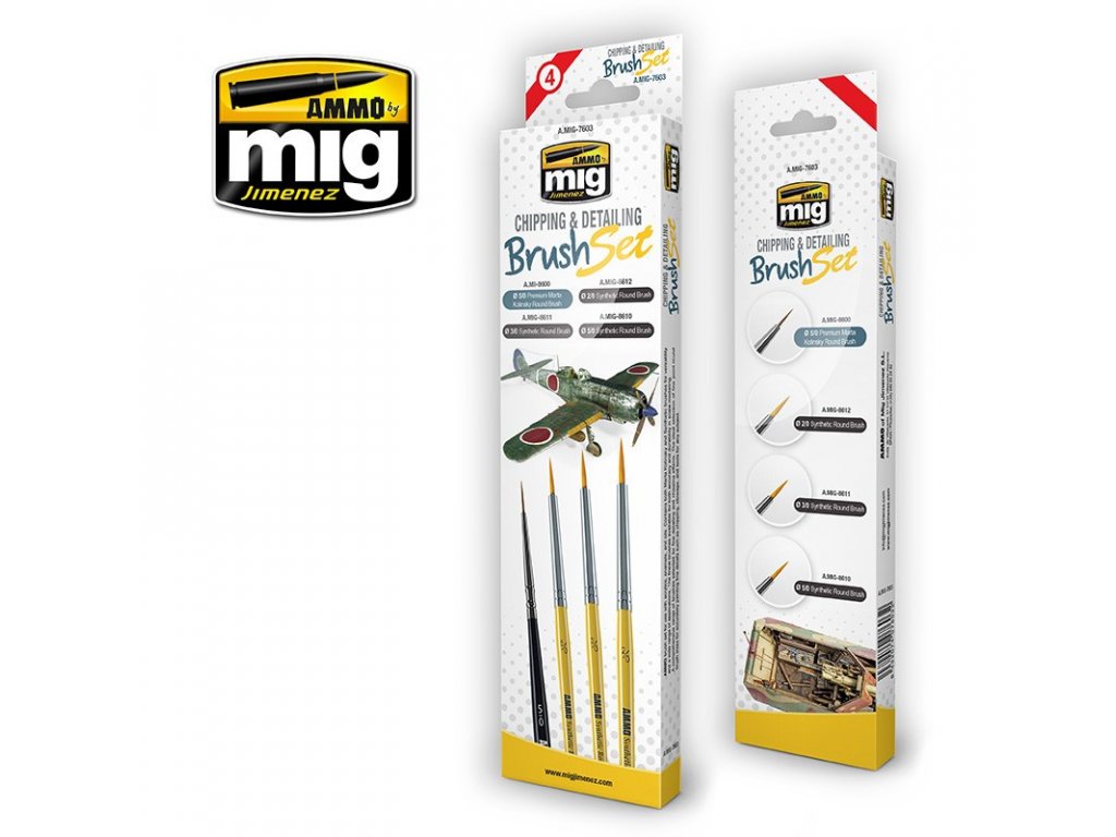 Ammo MIG Brush Set - Chipping & Detailing 4pcs