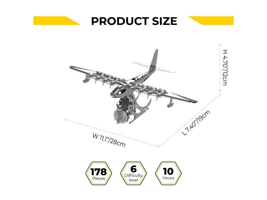 Metallic model kit. Made of high-quality polished steel sheet by laser burning and precise machining. Suitable for moderately advanced and older children. The kit contains pliers, a file, gloves and a cleaning cloth.