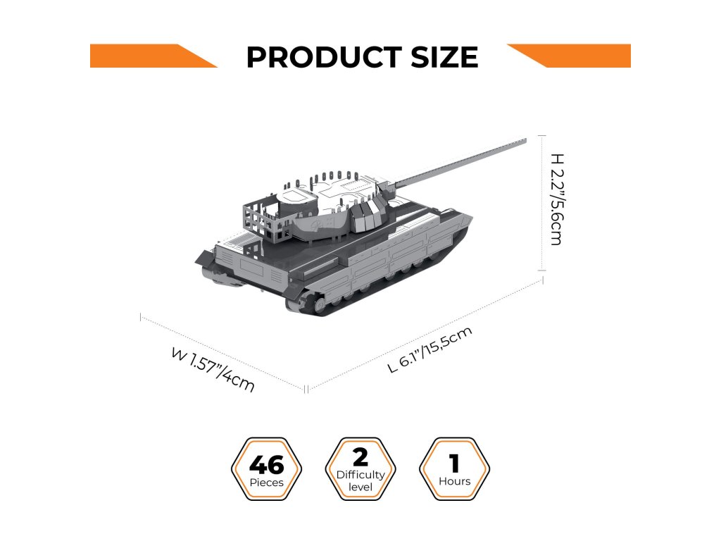 Metallic model kit. Made of high-quality polished steel sheet by laser burning and precise machining. Suitable for moderately advanced and older children.