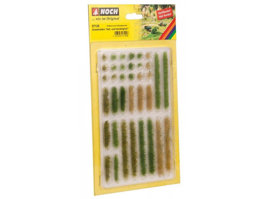 Diorama grass 6mm high - light and dark green strips 18 pcs