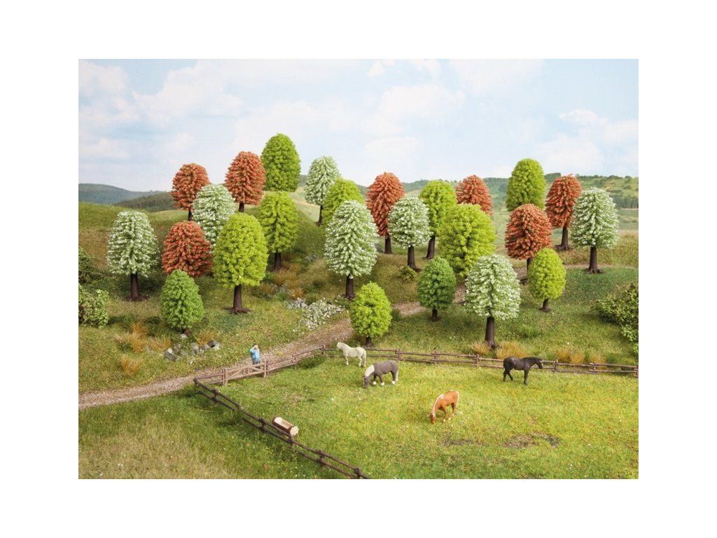 Diorama trees - deciduous spring 10 pcs mix 50-90mm high