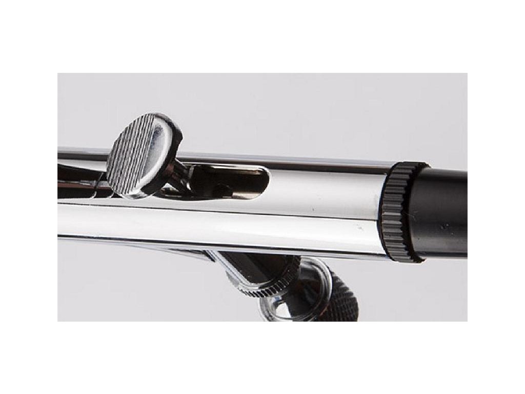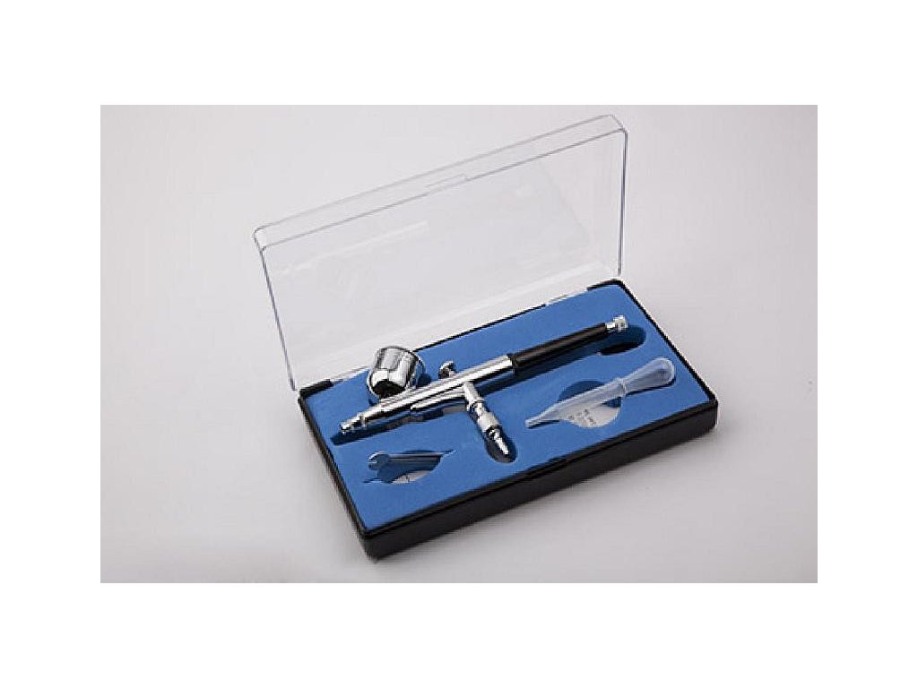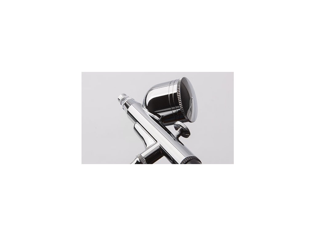 Professional all-metal spray gun with double-action trigger, classic nozzle and gravity filling. The specialty is a large funnel with a lid. Suitable for versatile use in modeling, art work (American retouching - painting pictures), for nail studios, for temporary tattoos (body painting) and for food work (painting cakes with food colors).
