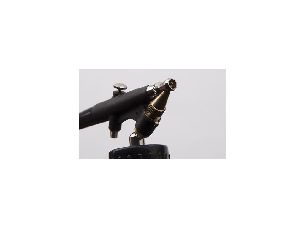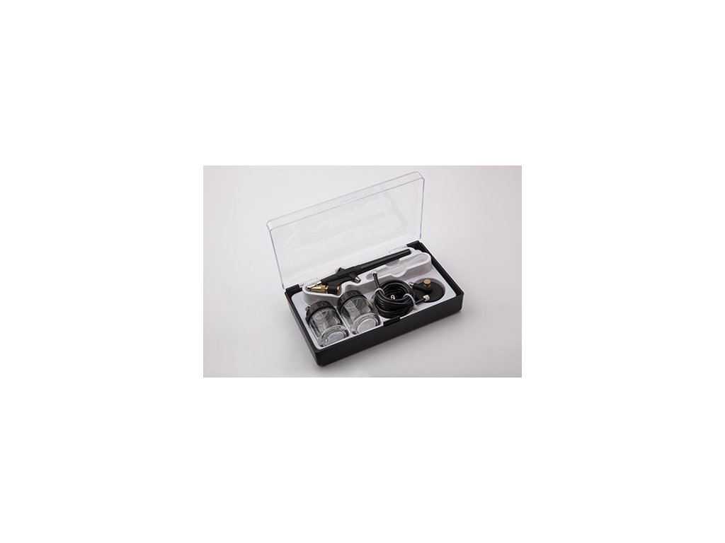 Compressed air source: There is a rule for working with an airbrush that you cannot cheat. Even with the best airbrush, you will not achieve a good result without a high-quality compressor or a stable air source. In an emergency, a can of compressed gas (spray) can be used to power the spray gun. But a compressed gas tank is only suitable for a gun of the simplest design, operating at low pressure and only for infrequent work, because it does not allow for a stably set pressure. If you use a higher-type airbrush, you definitely need a quality specialized compressor. The working pressure of airbrush generally ranges between 0.8 - 2.7 bar, depending on the type of airbrush and the type of work. Therefore, it is necessary for the compressor to have smooth pressure regulation. A quality compressor must also have a separation filter to capture small impurities from the air and especially water vapor. Some airbrush compressors also have a small pressure tank (air tank), which serves to ensure the most even air pressure at the compressor outlet. A common feature of a quality compressor is a pressure sensor that switches the compressor to standby mode as soon as you stop drawing compressed air into the gun (release the trigger). You cannot replace a specialized airbrush compressor with a cheap tire inflator or a large garage compressor for powering pneumatic tools.