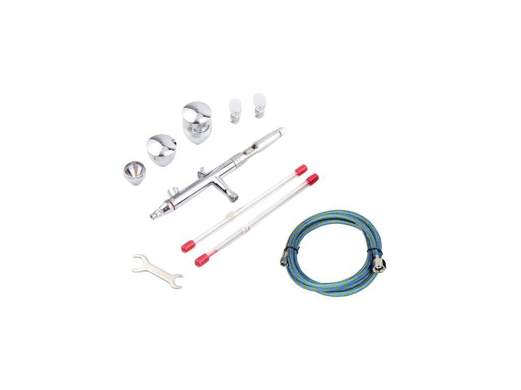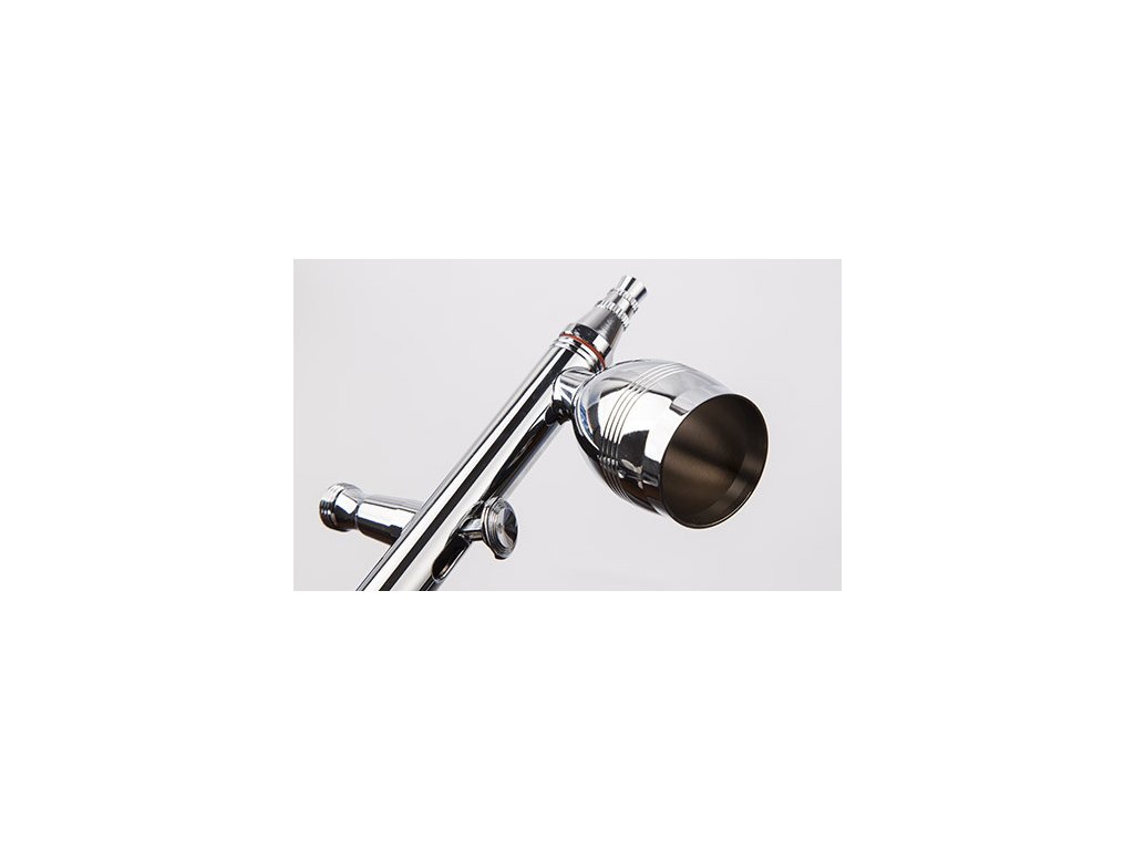 Professional all-metal spray gun with double-action trigger, modern VEGA system nozzle and gravity filling. The specialty of this gun is three interchangeable funnels for a wider range of spraying work. Suitable for versatile use in model making (model painting), in artistic work (American retouching - painting pictures), suitable for nail studios (nail decoration), suitable for temporary tattoos (body painting) and for food work (painting cakes and pies with food colors).