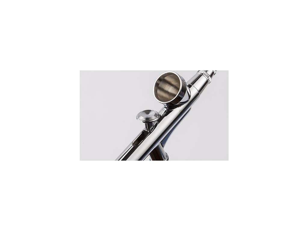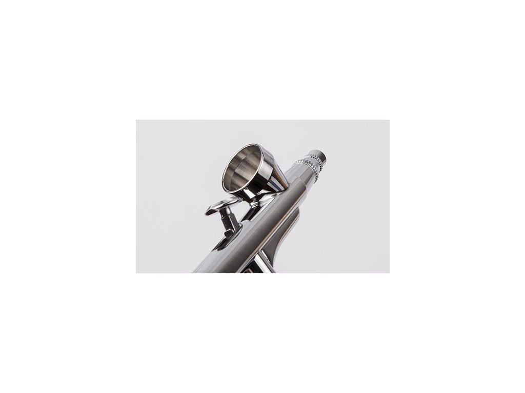 High-quality all-metal spray gun with double-action trigger, classic nozzle and gravity filling. The specialty of this gun is that it is small for small amounts of paint, i.e. for quick and frequent shade changes. Suitable for versatile use in modeling (model painting), in artistic work (American retouching - painting pictures), suitable for nail studios (nail decoration), suitable for temporary tattoos (body painting) and for food work (painting cakes and pies with food colors).