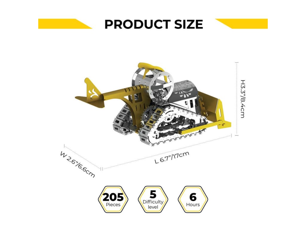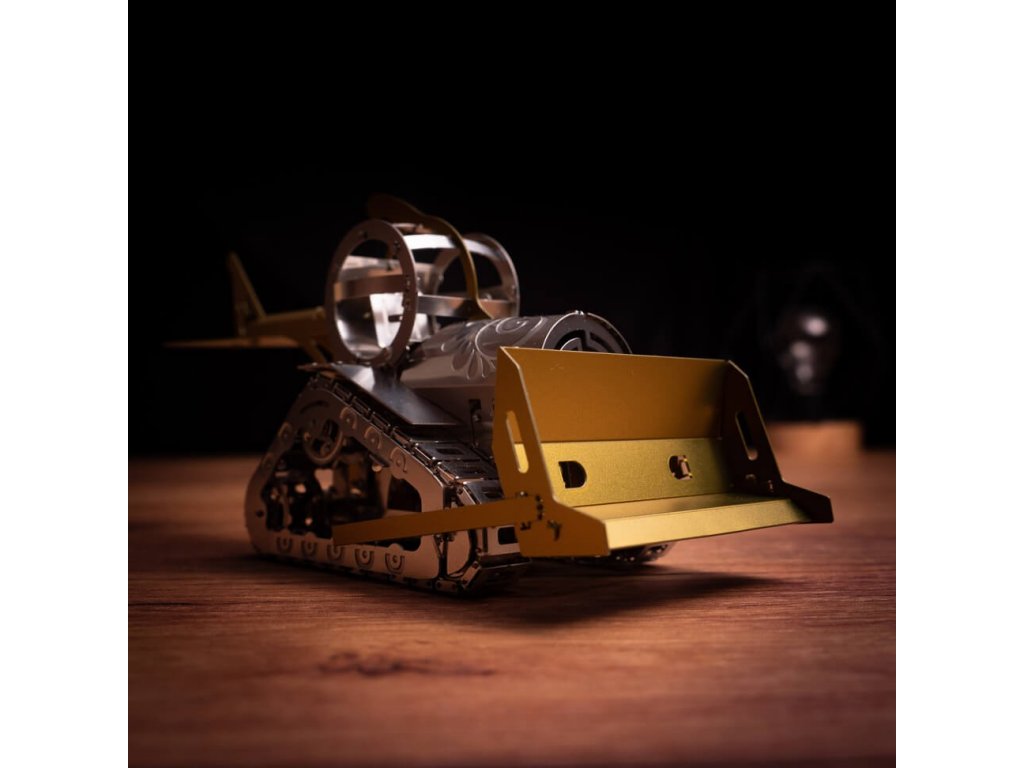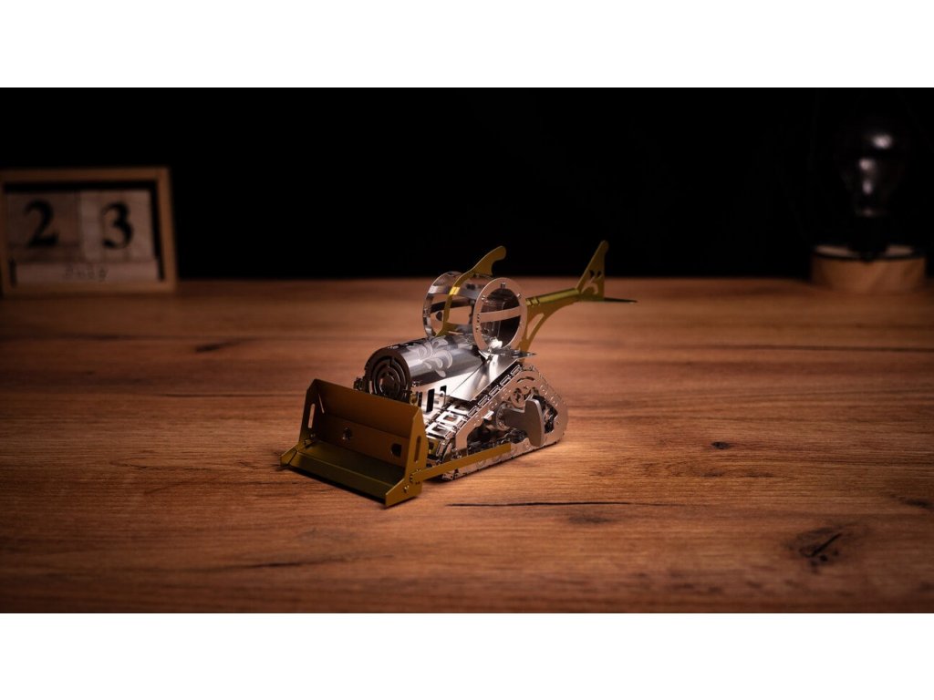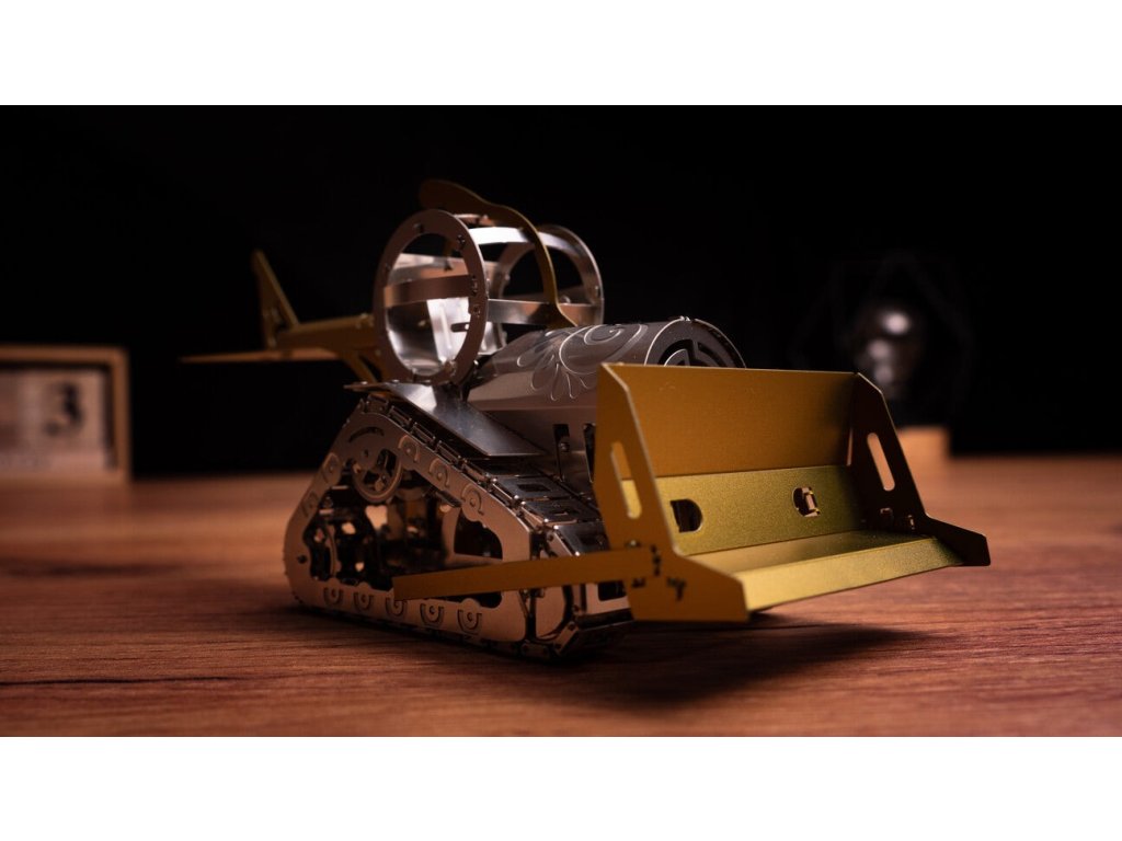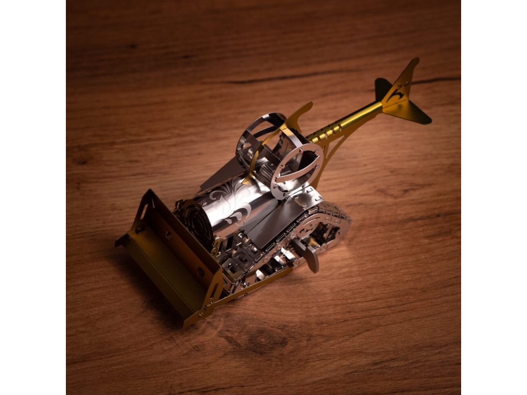Metallic model kit. Made of high-quality polished steel sheet by laser burning and precise machining. Suitable for moderately advanced and older children. The kit includes nippers, a file, gloves, a cleaning cloth and collectibles such as a badge and stickers.