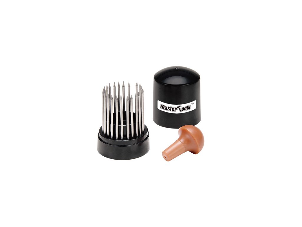 Hand tool for creating imitation rivets on the surface of a plastic model. The set includes 23 "rivets" of various diameters.