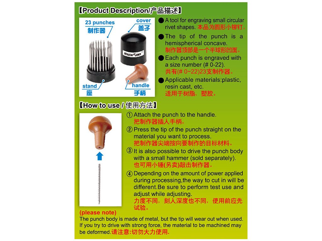 Product comment HG Micro Rivet Punch (23 Pcs , 0.25mm-1.35mm)